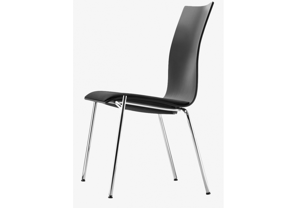 S 166 / 168 conçue par Delphin Design pour Thonet est une chaise avec assise rembourrée avec revêtement en tissu, cuir ou peau, structure en tube d'acier chromé. Coque en contreplaqué de hêtre façonné avec support lombaire, disponible en différentes finitions et deux hauteurs. La chaise est également disponible en différentes versions.