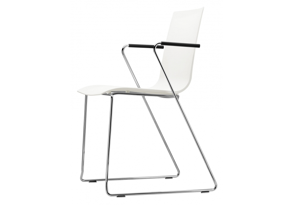 S 180 ST / FST conçue par Delphin Design pour Thonet est une chaise empilable en fil d'acier avec structure en fil chromé, pieds en plastique. Coque en polypropylène de différentes couleurs. Disponible avec ou sans accoudoirs.