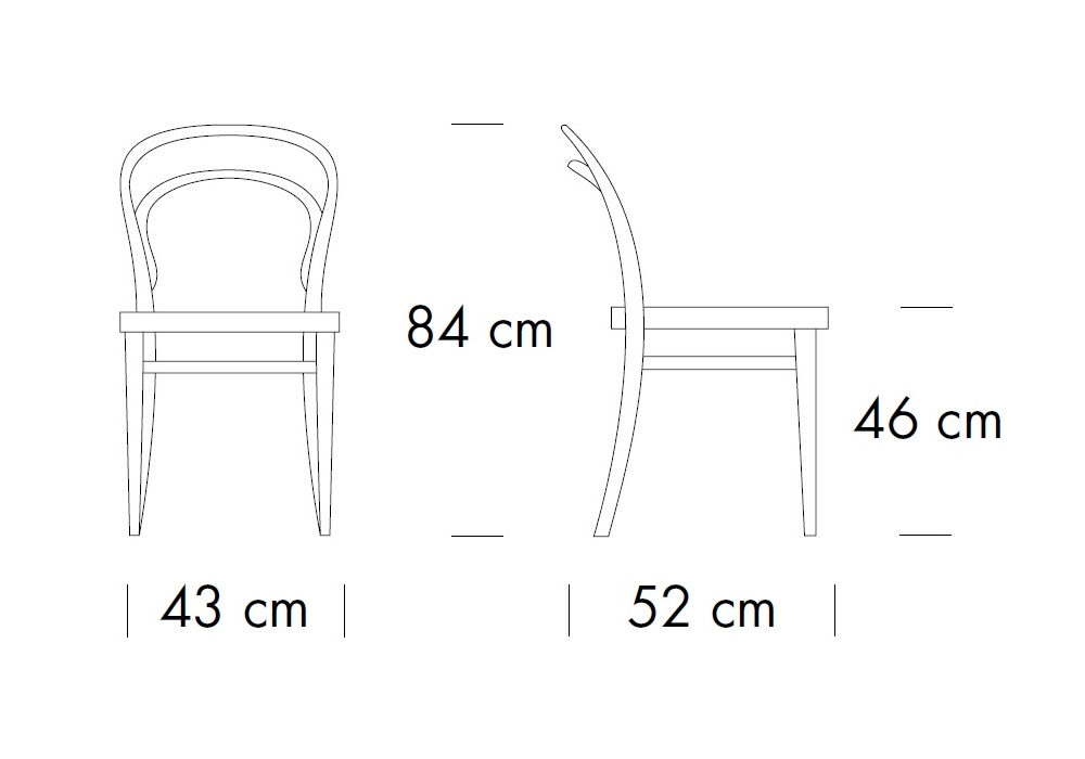 214 conçue par Michael Thonet pour Thonet est une chaise en bois courbé et pieds en plastique. Assise en rotin tressé. Structure en hêtre, disponible en différentes finitions.