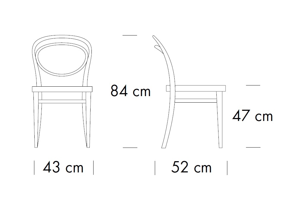 215 P conçue par Michael Thonet pour Thonet est une chaise en bois courbé et pieds en plastique. Assise et dossier rembourrés avec revêtement en tissu, cuir ou cuir. Structure en hêtre, disponible en différentes finitions.