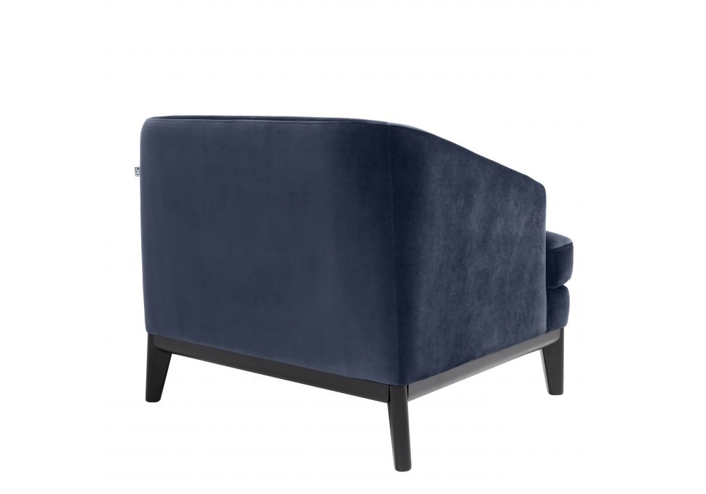 Chaise Monterey conçue par Eichholtz est une chaise avec accoudoirs inclinés et revêtement en velours Savona bleu nuit.