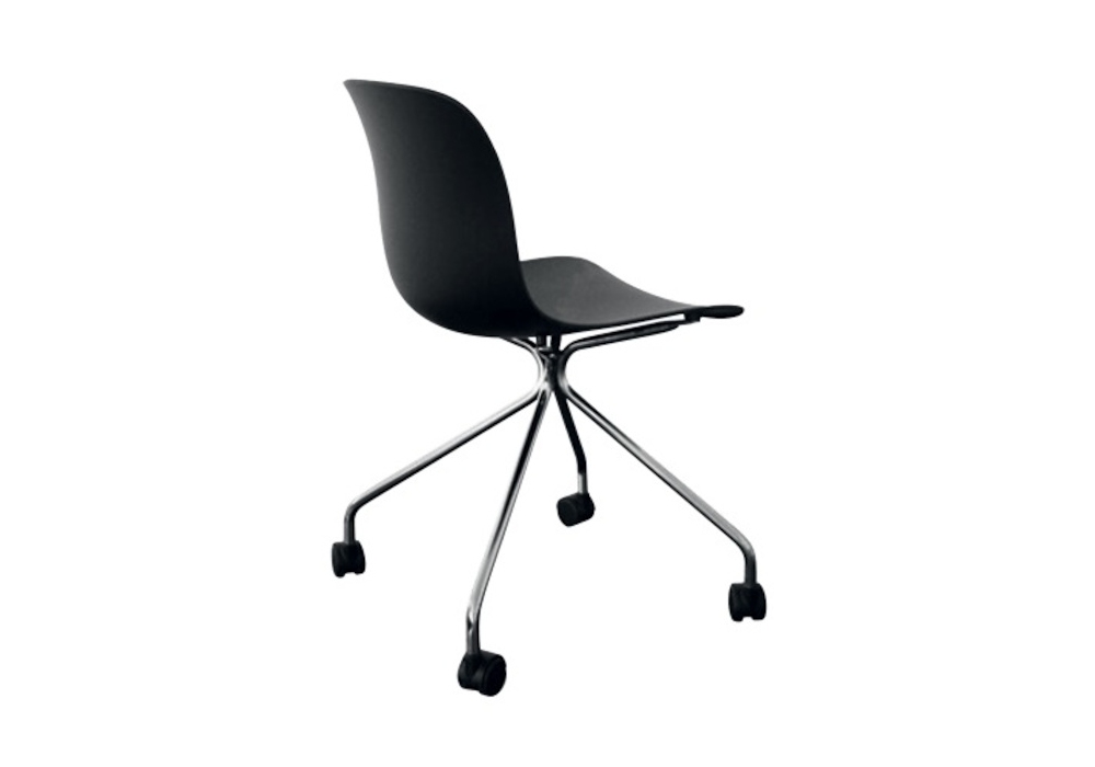 Troy 4 Star Wheels Polypropylene conçue par Marcel Wanders pour Magis est une chaise à 4 branches, sur roulettes avec assise en polypropylène, structure en tube d'acier chromé ou peint.