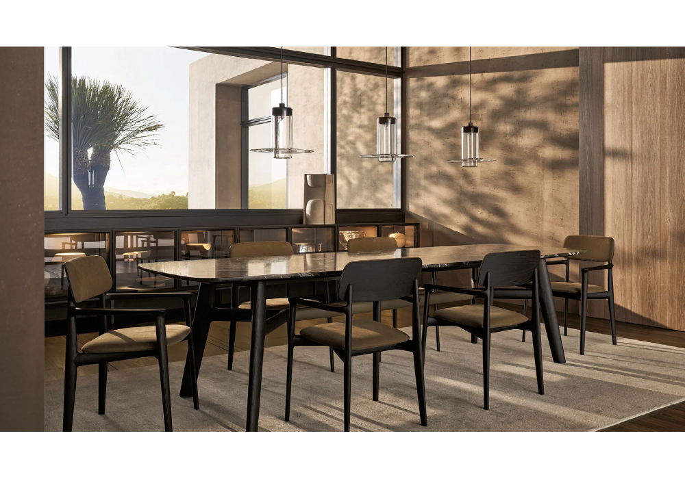 Curve conçue par Emmanuel Gallina pour Poliform est une chaise disponible avec ou sans accoudoirs. Structure en bois massif, chêne spessart ou orme noir. Il est présenté dans les versions suivantes : dossier et assise rembourrés avec revêtement en tissu ou cuir, assise rembourrée avec dossier en bois dans la même finition de la structure.