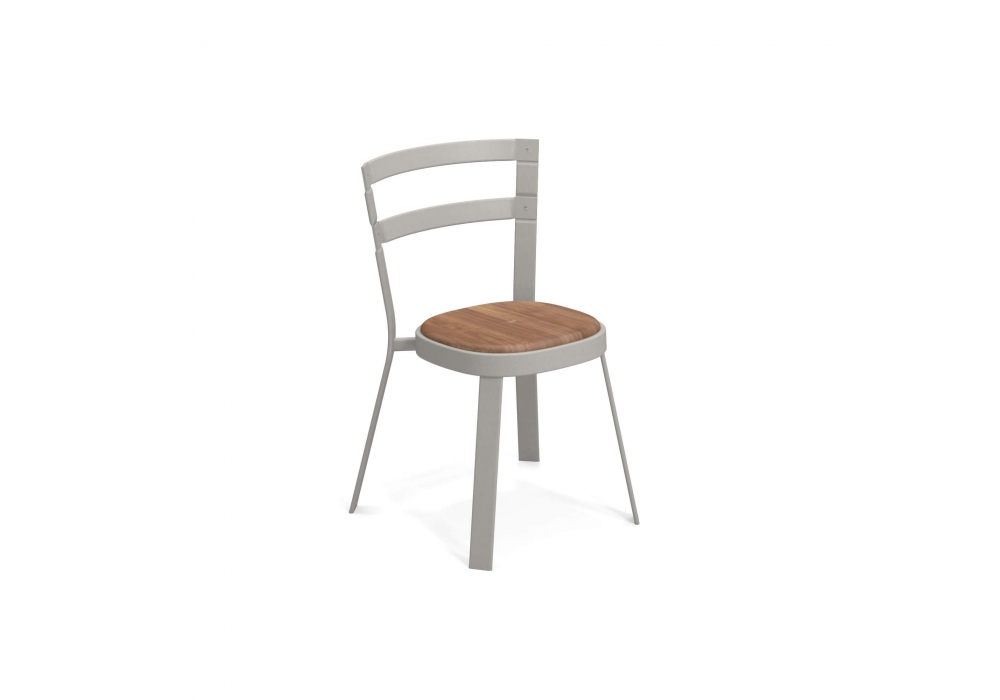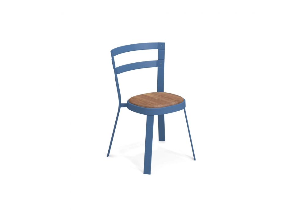 Thor conçue par Chiaramonte / Marin pour EMU est une chaise de jardin en acier, ses lignes classiques sont rendues plus modernes et vivantes par la palette de couleurs et la forme inhabituelle d'assemblage des composants. Disponible avec assise en teck et en différentes finitions.
