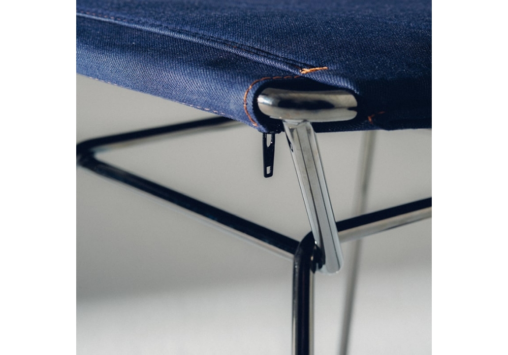 Neil Denim conçue par Jean Marie Massaud pour MDF Italia, en collaboration avec la haute couture de Jacob Cohën, est une chaise avec dossier et assise en finition denim. Le tissu se caractérise par des coutures rivetées et des coutures esthétiques contrastées de couleur tabac, inspirées du packaging des jeans classiques. La structure portante du dossier et de l'assise est en fil d'acier, disponible en différentes finitions.