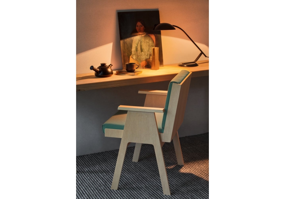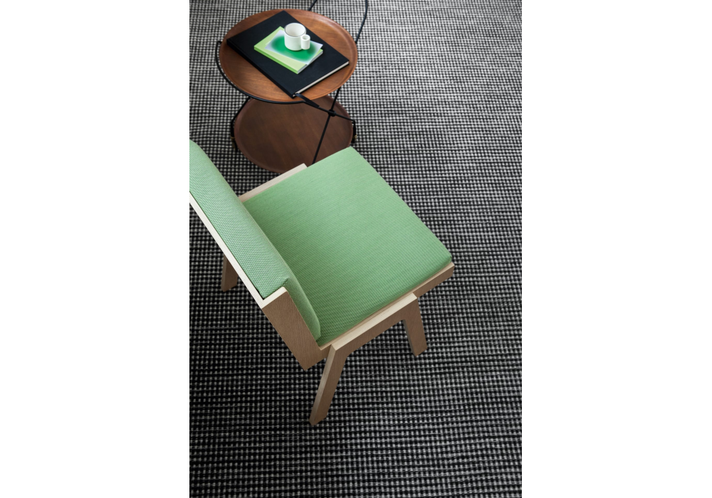 Club 44 conçu par Mangiarotti pour AgapeCasa est un fauteuil avec structure en contreplaqué de bouleau avec différentes finitions. Assise et dossier recouverts de coussins en tissu. Disponible dans la version avec ou sans accoudoirs.