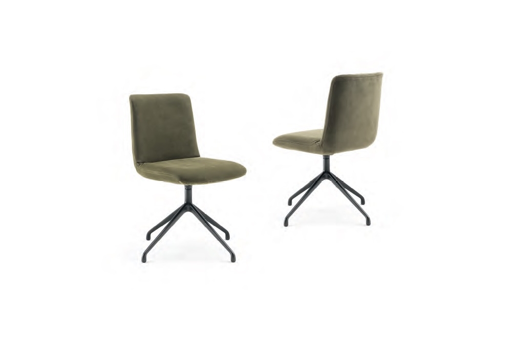 Materia Soft conçue par Claudio Bellini pour Riva 1920 est une chaise avec coque enveloppante en polyuréthane avec dossier et assise rembourrés en cuir ou tissu avec coutures apparentes. Équipé d'une base en fer pivotante.