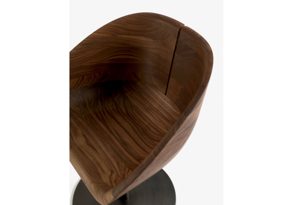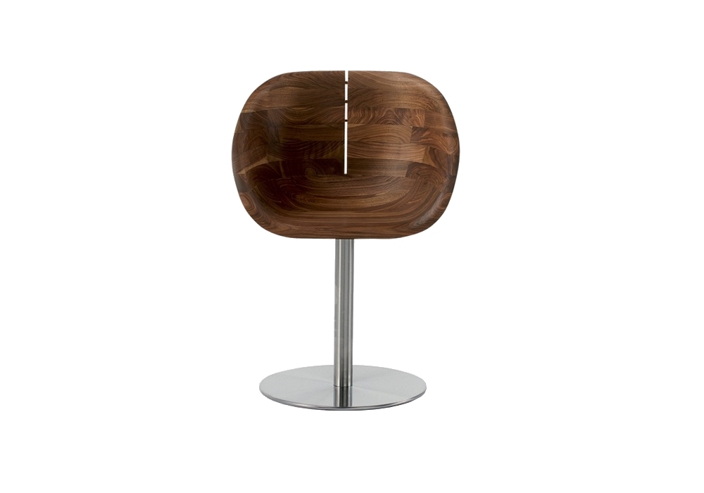 Gioconda conçue par C.R. & S. Riva 1920 est une chaise avec dossier et assise entièrement en lattes de bois massif, modelées dans une forme enveloppante. Structure avec pied pivotant.