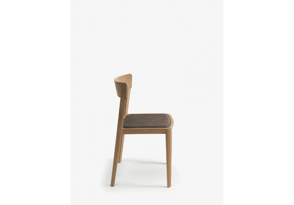 Mia Leather conçue par C.R. & S. Riva 1920 est une chaise en bois massif, avec coussin d'assise rembourré, recouvert de cuir et intégré dans la structure.