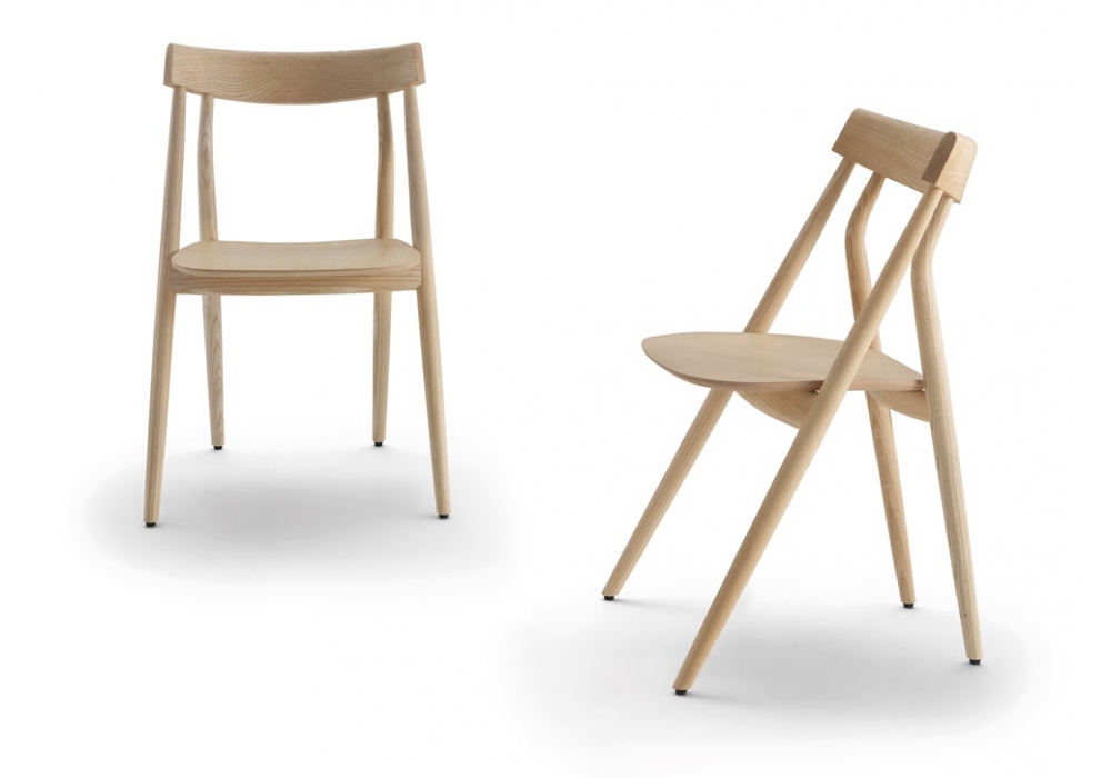 Lizzy conçue par David Dolcini pour Arflex est une chaise avec structure en frêne massif courbé en différentes finitions.