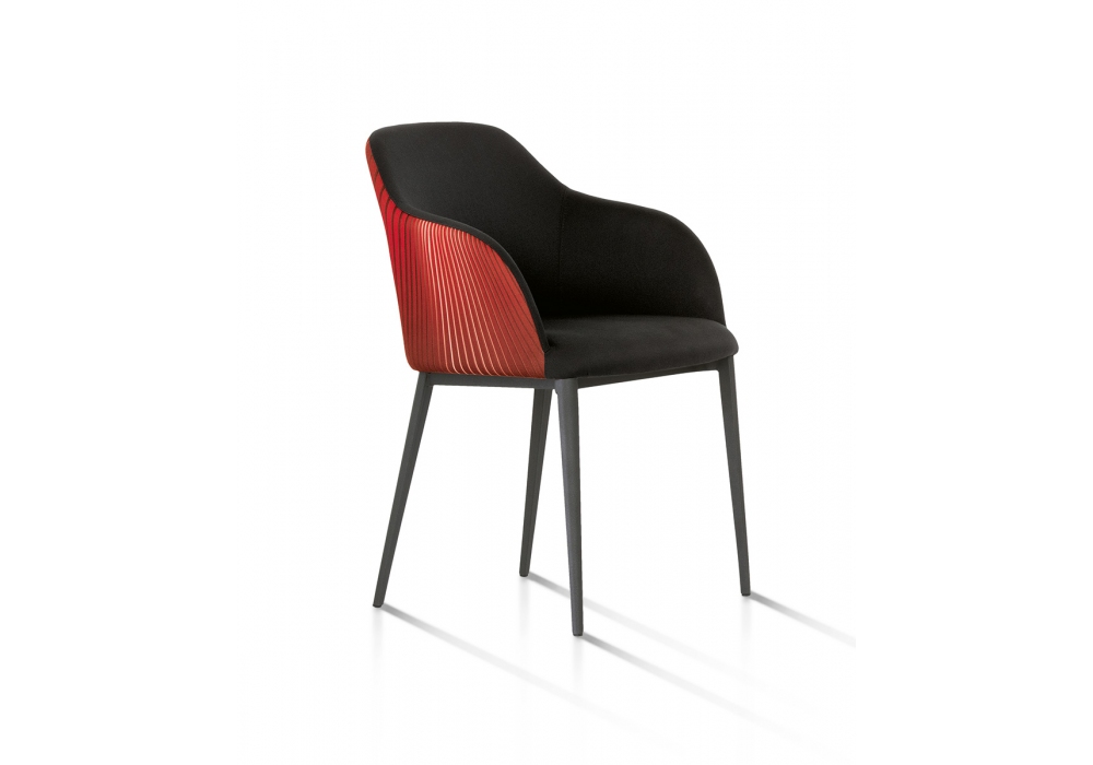 Sofia conçue par Stefano Sandonà et Sabrina Bettini pour Riflessi est une chaise avec structure en métal peint et pieds en métal ou en bois. Rembourrage en polyuréthane flexible moulé à froid et rembourrage inamovible en tissu ou cuir. Sur demande corps extérieur en Satin. Disponible en différents modèles.