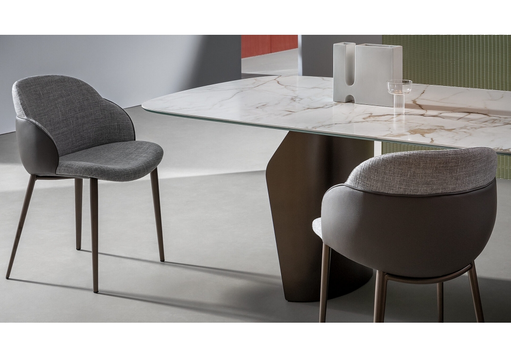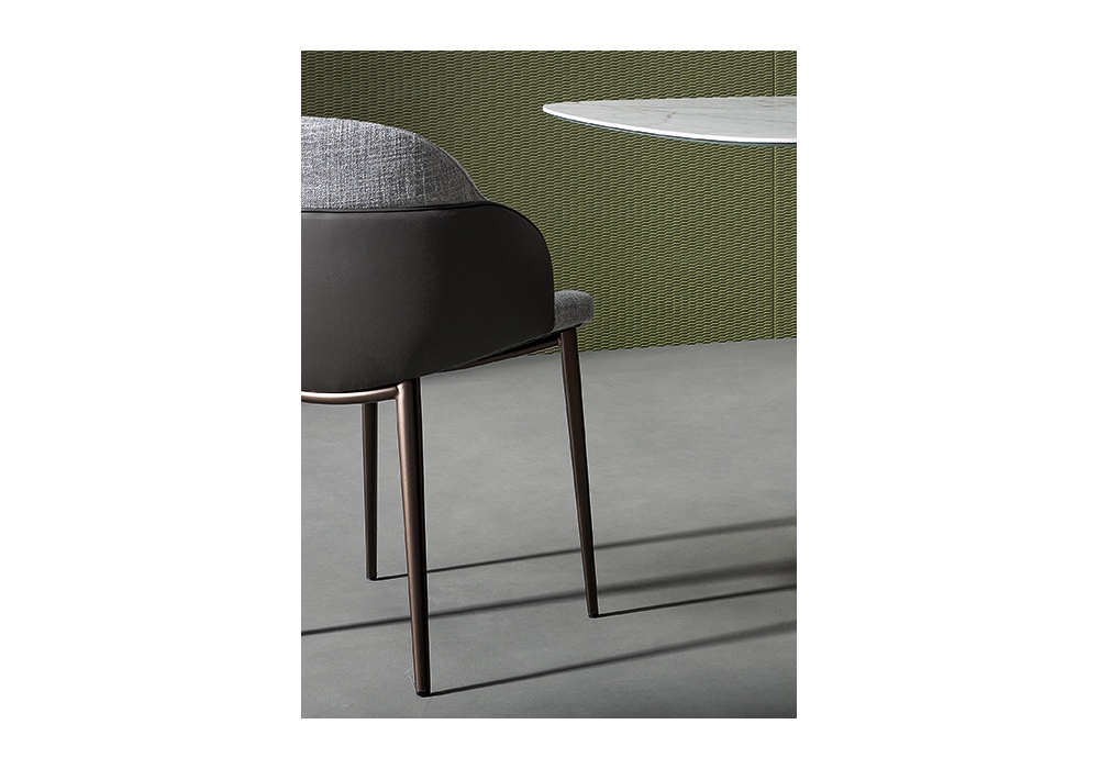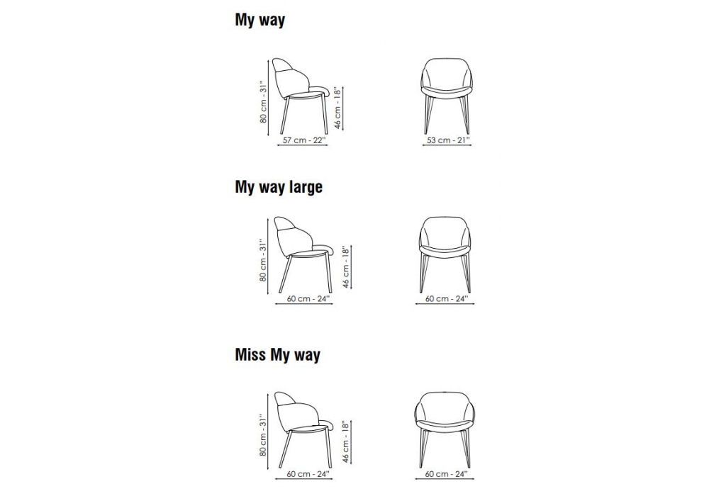 My Way conçue et produite par Bonaldo est une chaise avec structure en acier et rembourrage en caoutchouc indéformable à haute densité. Le revêtement du devant est en tissu, tandis que celui du dos est en cuir, en différentes finitions. La chaise est disponible en différents modèles et tailles.