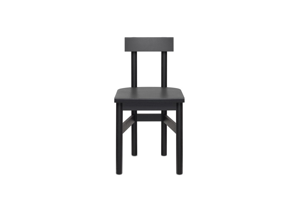 Gamar conçue par Spacon & X pour E15 est une chaise avec structure en bois, elle est réalisée en chêne européen transparent ou laqué noir.