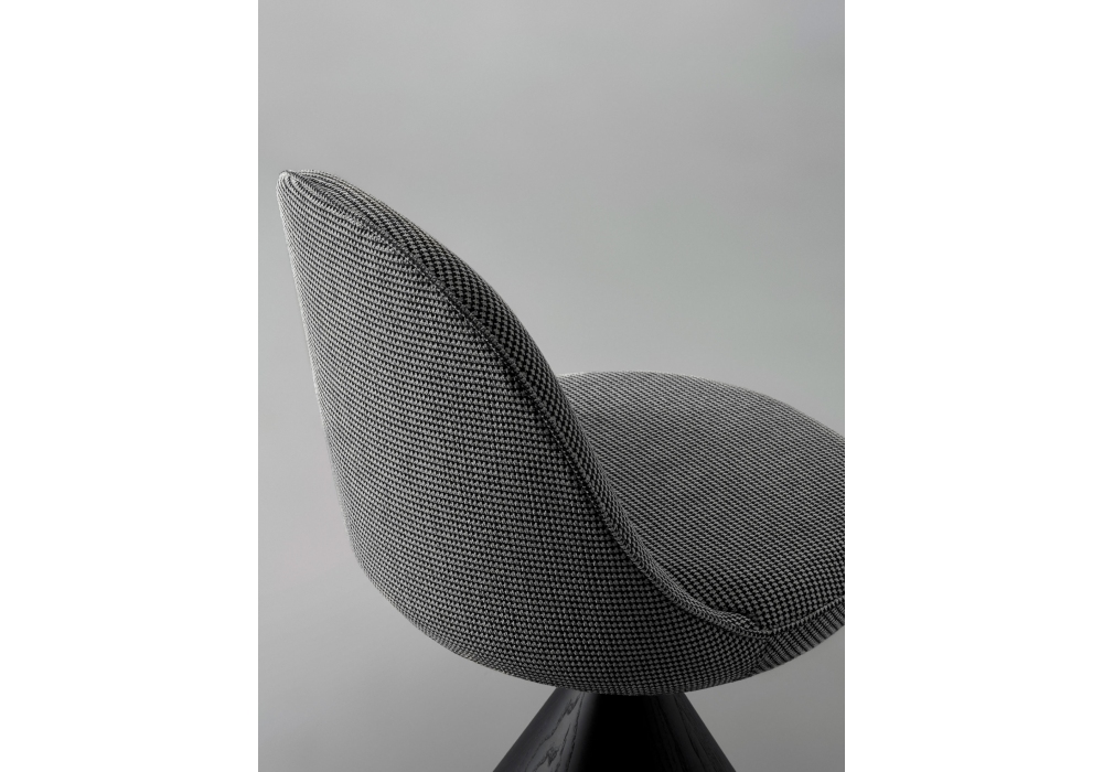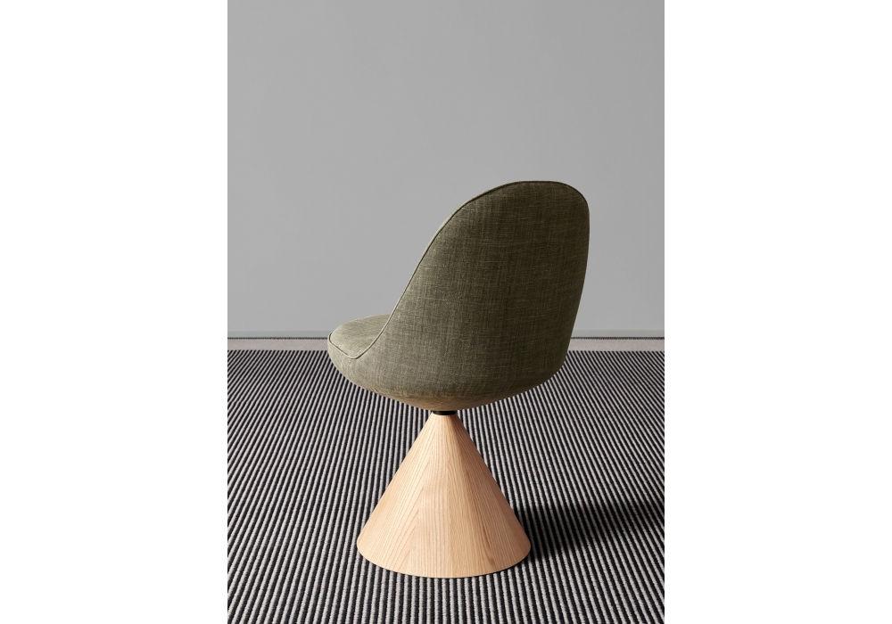 Romby conçue par GamFratesi pour Porro est une chaise pivotante réalisée avec base en frêne massif et assise rembourrée et revêtue en tissu ou cuir.
