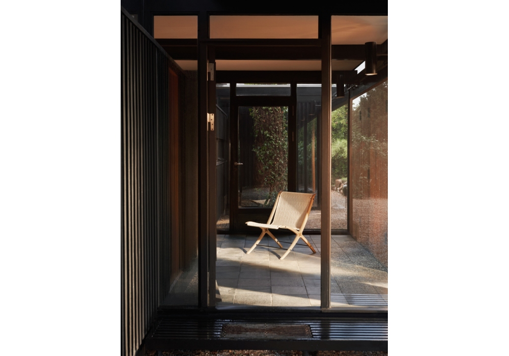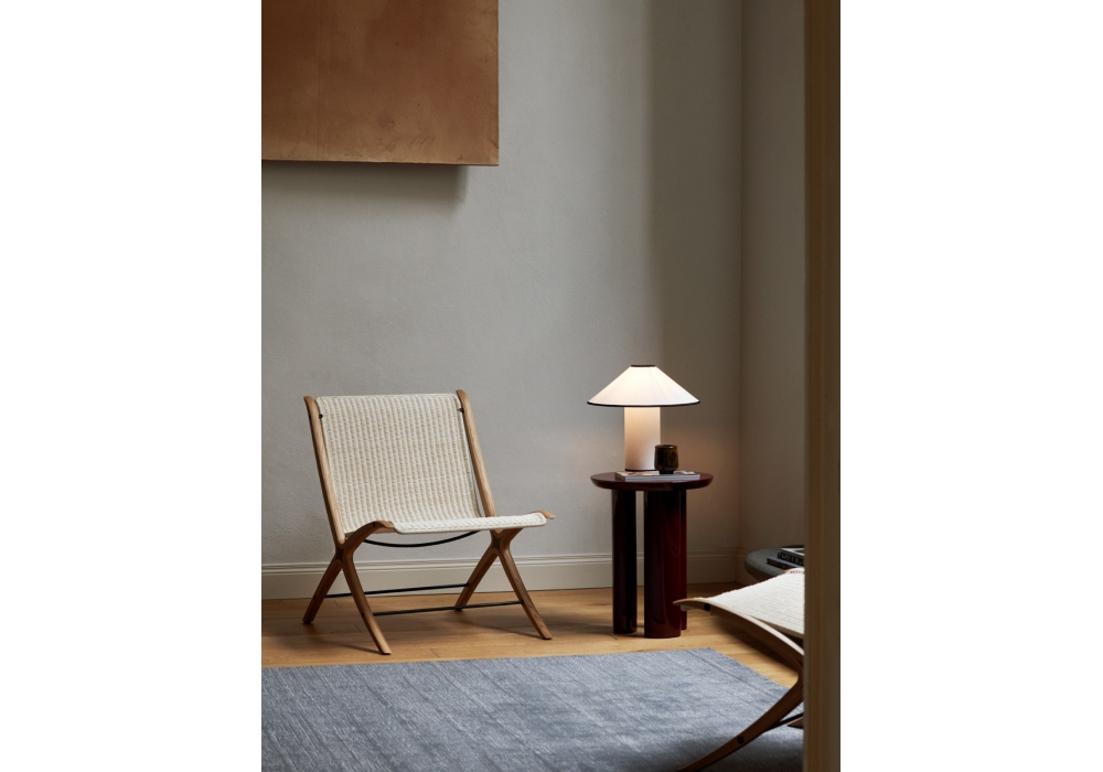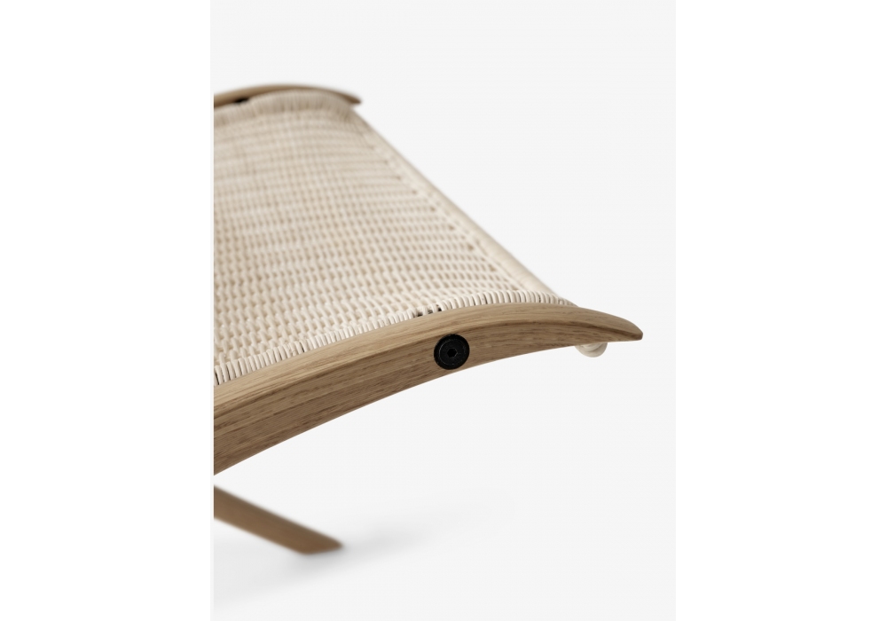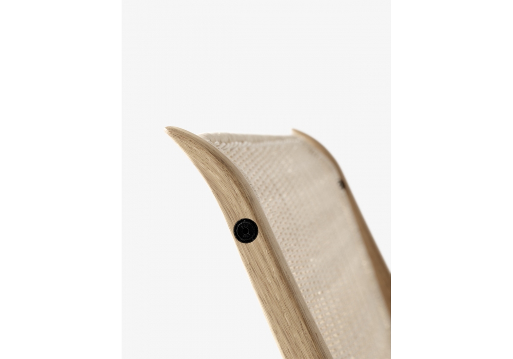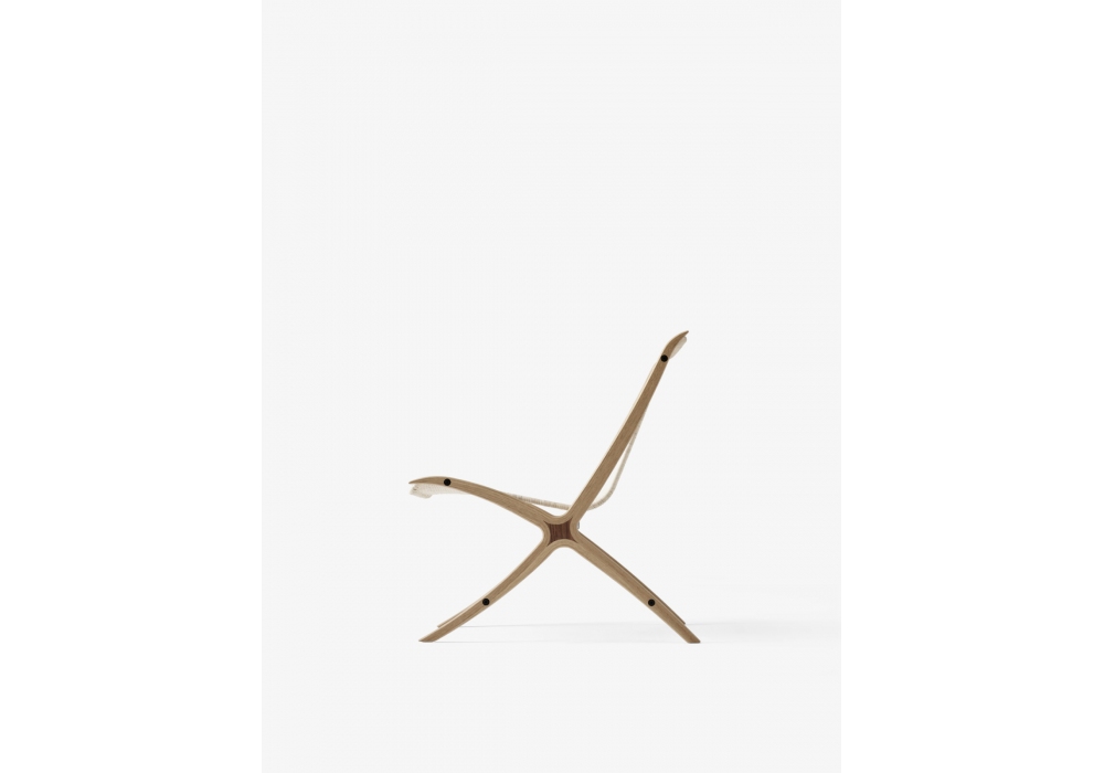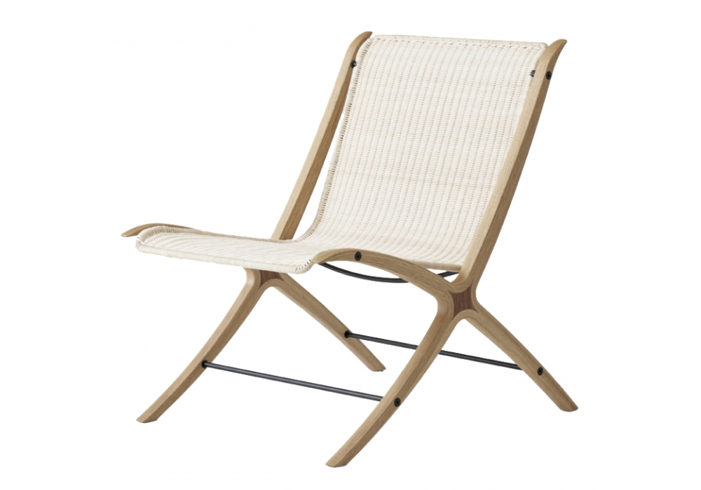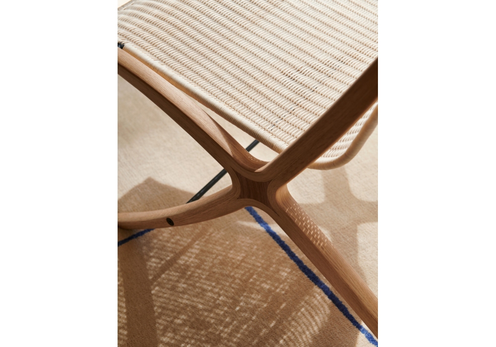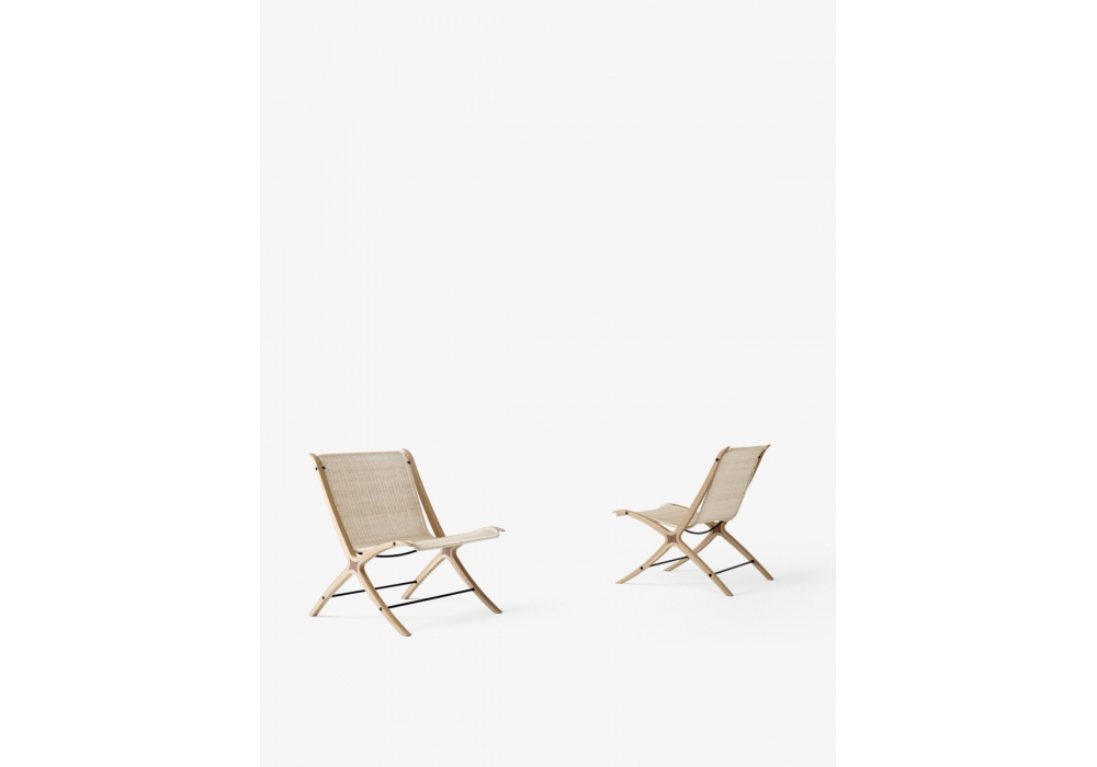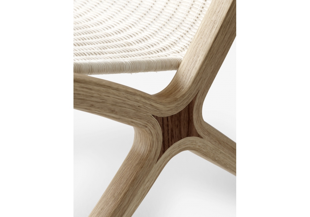 X conçue par Hvidt & Mølgaard pour &Tradition est une chaise en chêne avec insert en noyer massif et assise en rotin naturel.