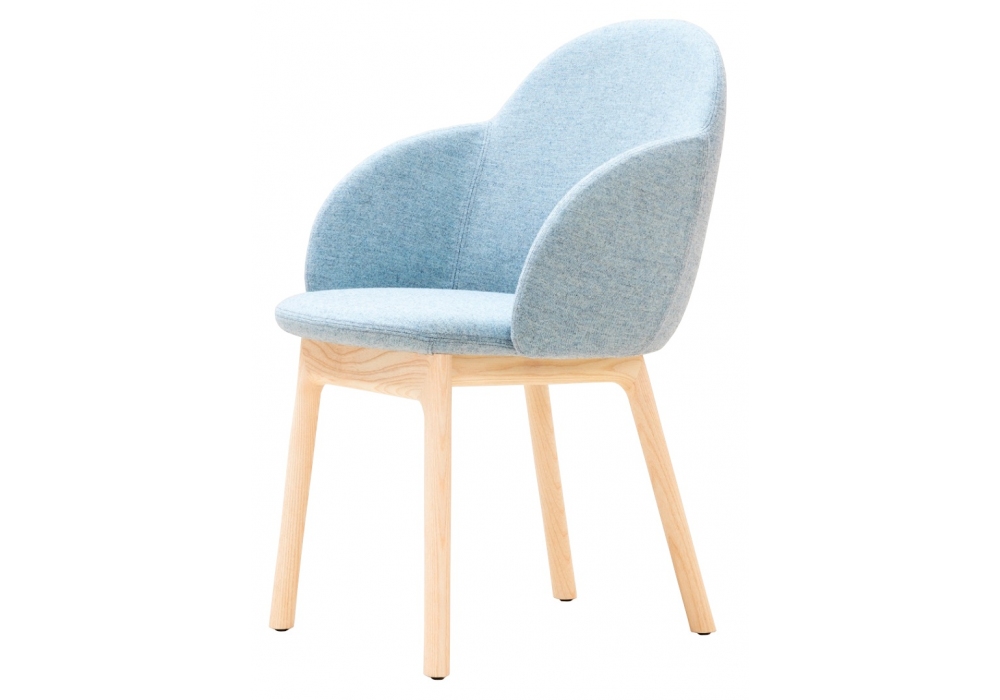 Iola Wood conçue par E-ggs pour Miniforms est une chaise avec base en frêne, coque et accoudoirs en polyuréthane flexible, recouvert de tissu. Disponible en différentes finitions et dans la version avec ou sans accoudoirs.