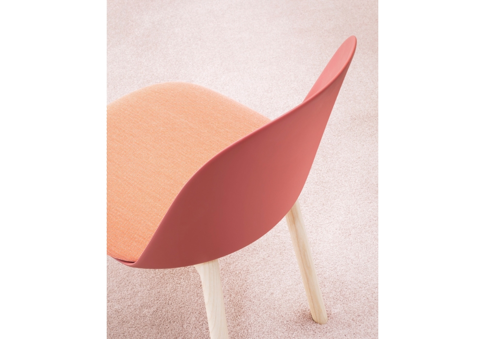 Mariolina Wood conçue par E-ggs pour Miniforms est une chaise avec pieds en frêne, coque en polypropylène, assise avec revêtement en tissu. Disponible en différentes finitions.