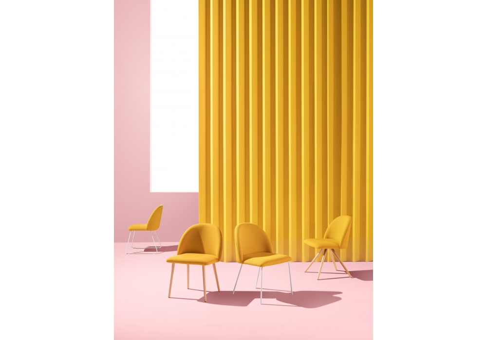Bloom conçue par Air Design pour Luxy est une chaise avec une base luge en tube d'acier à haute résistance avec une finition chromée ou peinte avec des poudres époxy et une semelle intérieure en nylon transparent. Le siège est en mousse de polyuréthane. Disponible en différents modèles et finitions.