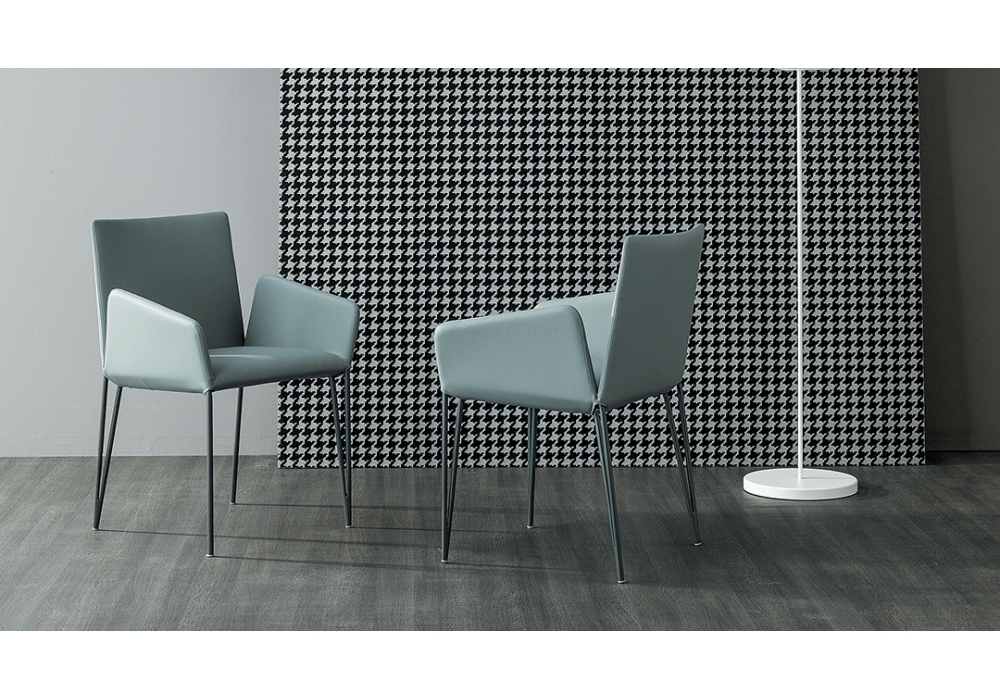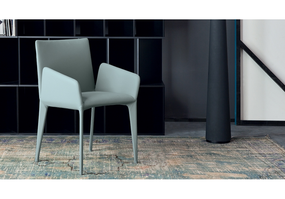Miss Filly conçue par Bartoli Design pour Bonaldo est une chaise rembourrée entièrement recouverte de tissu, cuir ou éco-cuir. Disponible en différents modèles. Les pieds sont disponibles dans le même revêtement que l'assise ou en métal verni mat.