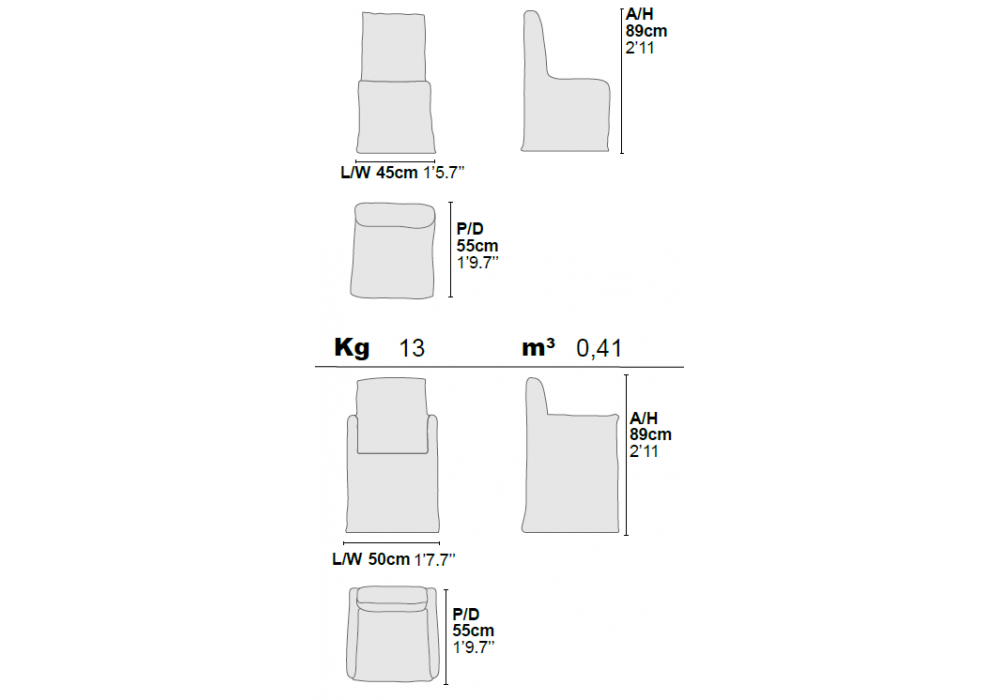 | Dimensions | RCS01: 45 x 55 x H 89 cm; RCS02: 50 x 55 x H 89 cm. |