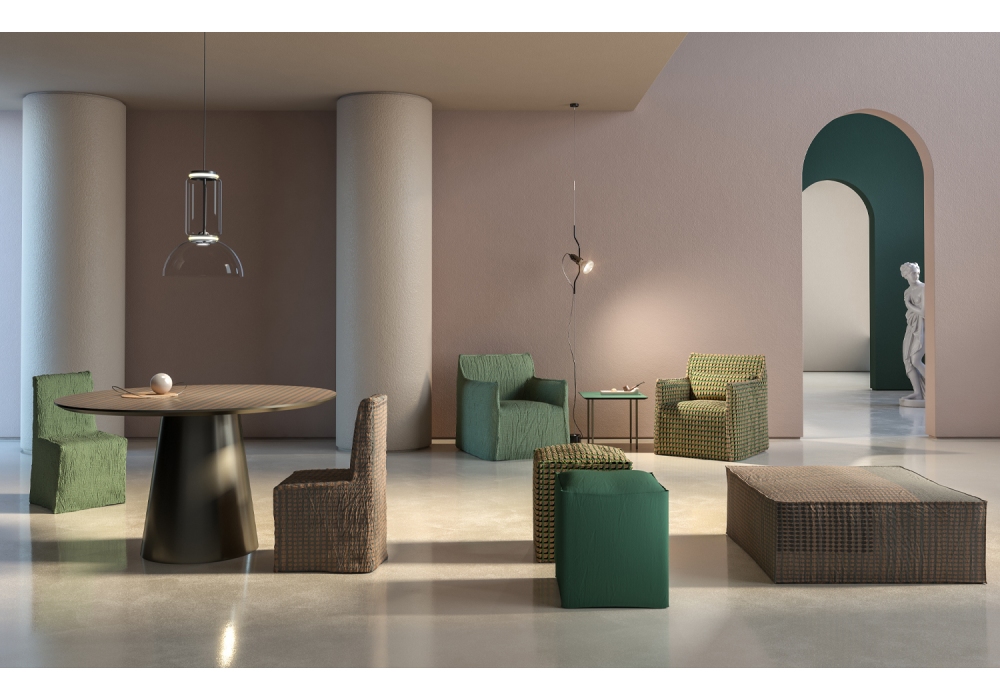 Rochester conçue par Momenti Lab pour Momenti est une chaise avec structure en métal enduit de poudre. Coque d'assise avec rembourrage en mousse de polyuréthane ignifuge. Coutures en bec d'oie. Housse amovible. Disponible dans la version avec ou sans accoudoirs.