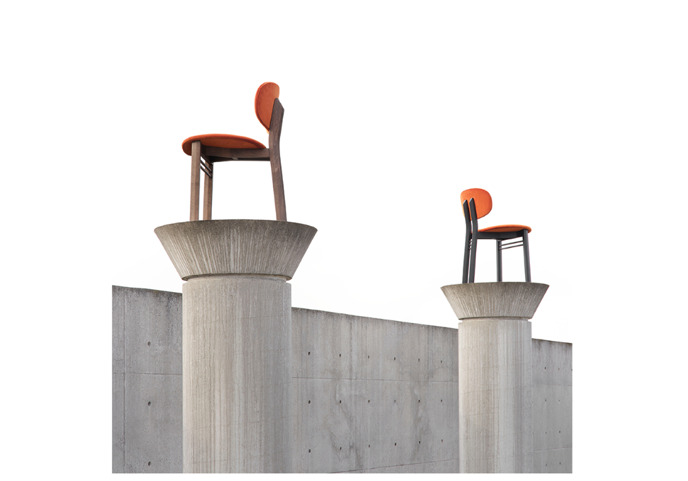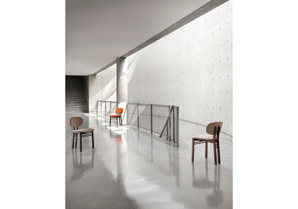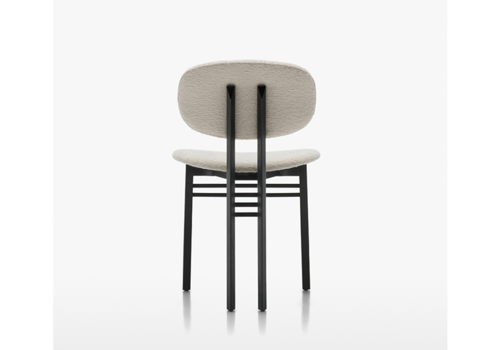 Med conçue par Lodovico Acerbis et Giotto Stoppino pour Acerbis est une chaise avec structure en bois de frêne massif dans les couleurs noir et noyer foncé. Dossier et assise en contreplaqué courbé, avec rembourrage en polyuréthane et revêtement en tissu de différentes finitions. Le rembourrage n'est pas amovible et recouvre entièrement le dossier et l'assise.