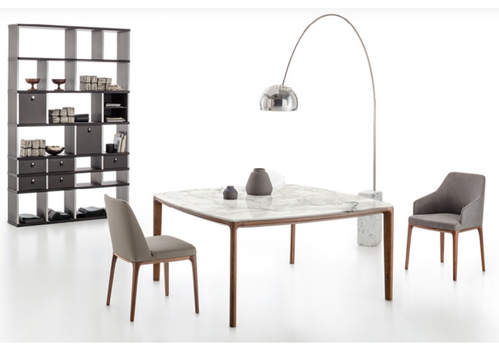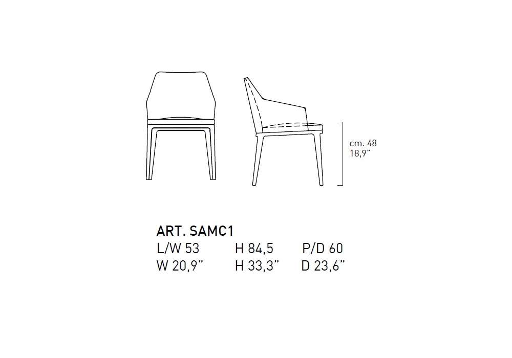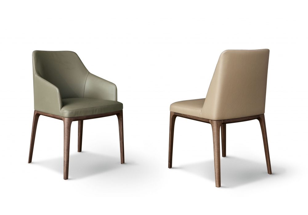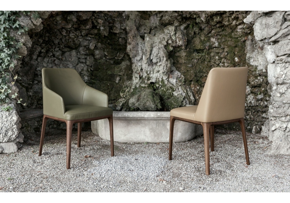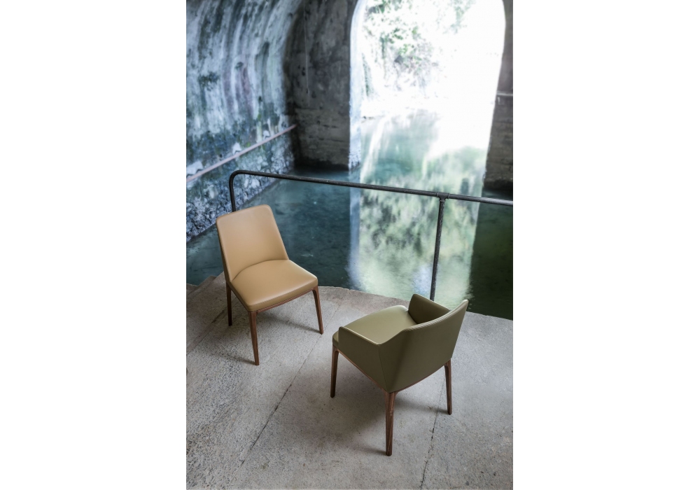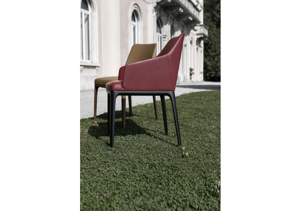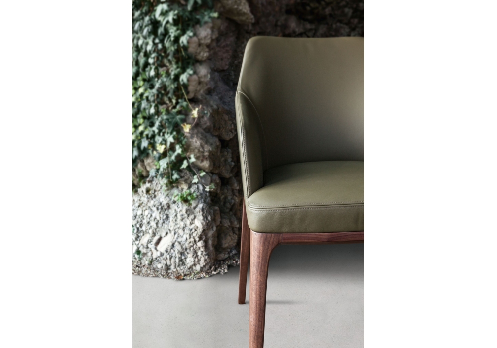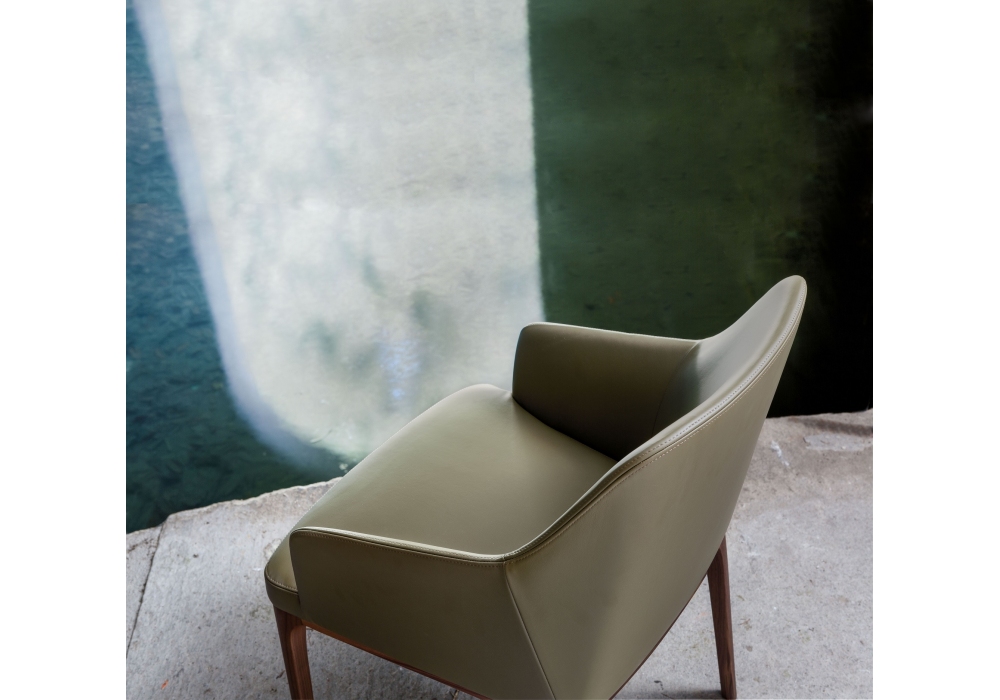 Amanda Comfort conçue par Giuseppe Bavuso pour Alivar est une chaise avec accoudoirs réalisée avec des pieds en frêne massif peint ou noyer national. Coque en métal recouverte de polyuréthane expansé à froid et doublure en fibre de polyester. Revêtement en cuir ou tissu.