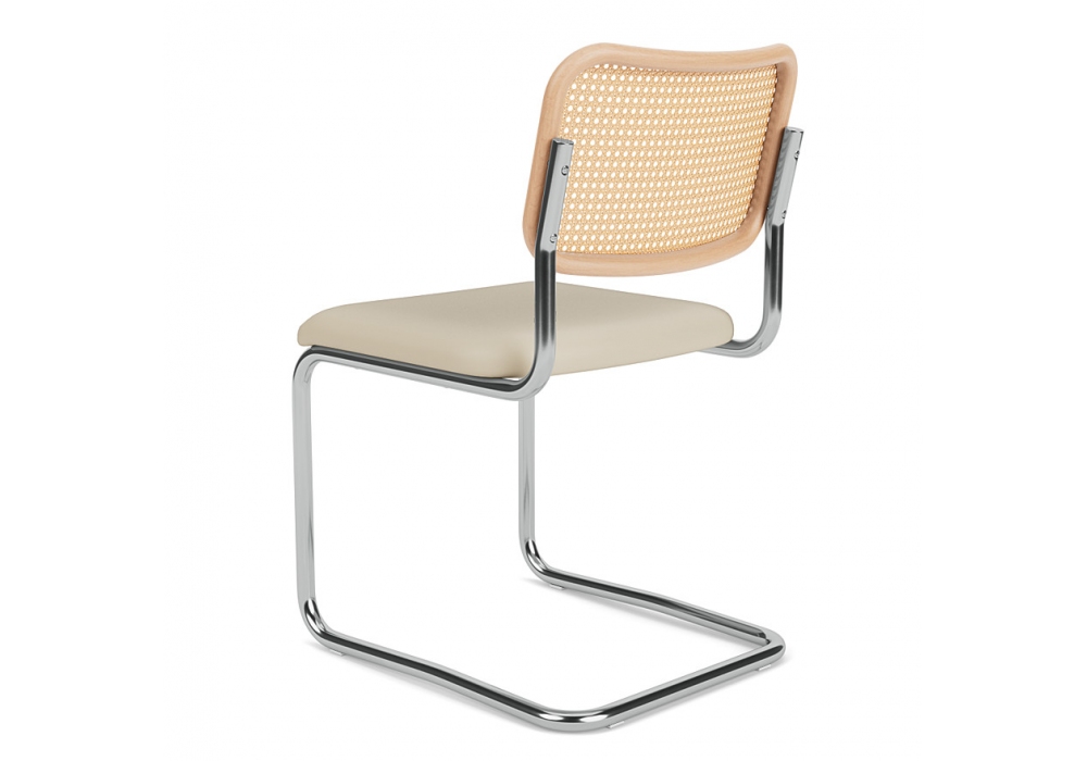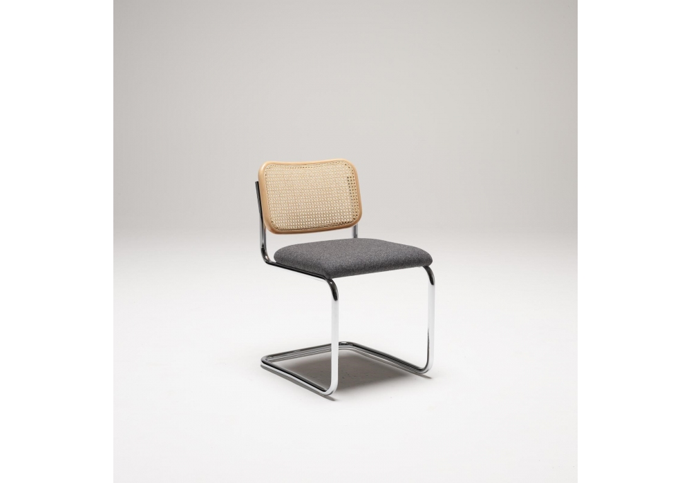 Cesca conçue par Marcel Breuer pour Knoll est une Siège Rembourré avec structure en tube d'acier chromé ou peint en différentes finitions mates. Dossier en hêtre paille peint naturel ou laqué noir. Assise recouverte de cuir ou de tissu. Disponible dans la version avec ou sans accoudoirs.