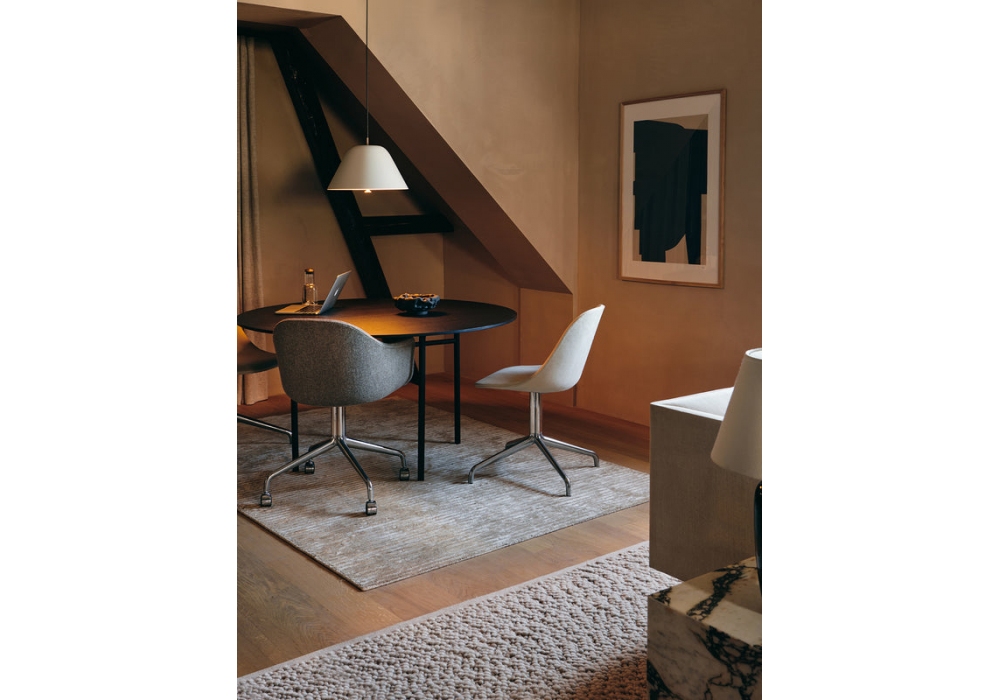 Harbour Side Plastic conçue par Norm Architects pour Audo Copenhagen est une chaise pivotante avec coque en polypropylène avec fibre de verre, base en aluminium. Disponible en différentes finitions.