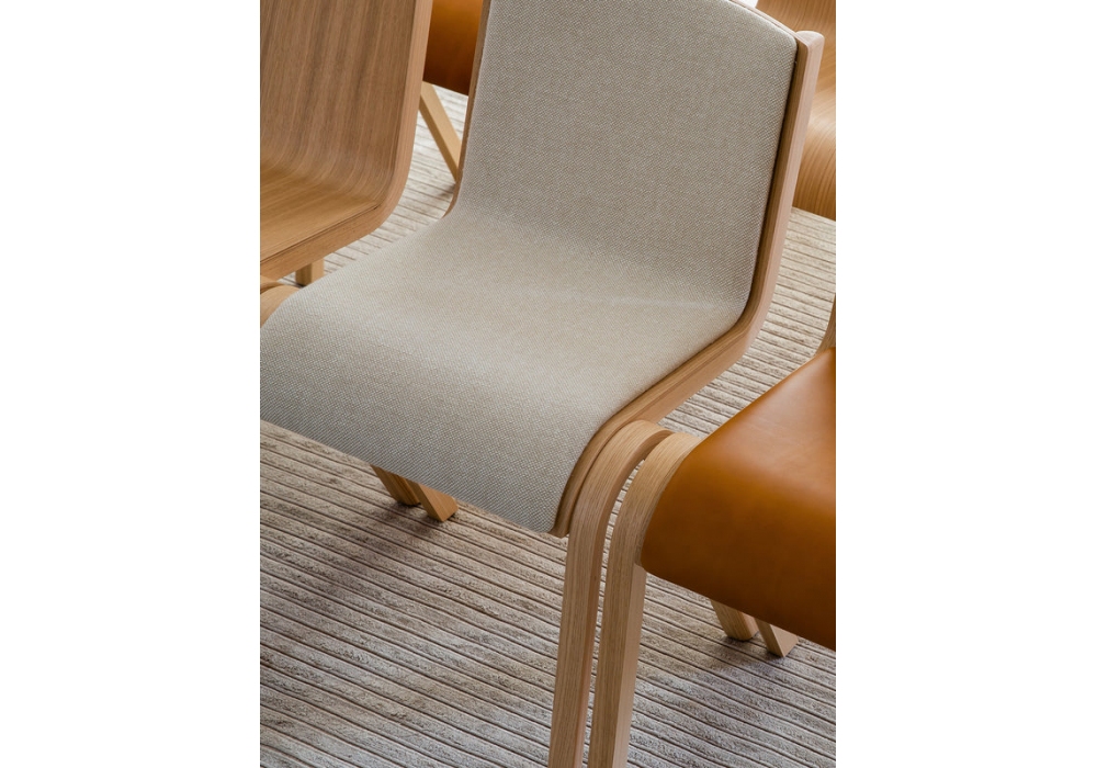 Ready Front conçue par Matias Møllenbach et Nick Rasmussen pour Audo Copenhagen est une chaise en chêne, entièrement recouverte de tissu ou de cuir. Disponible en différentes finitions.
