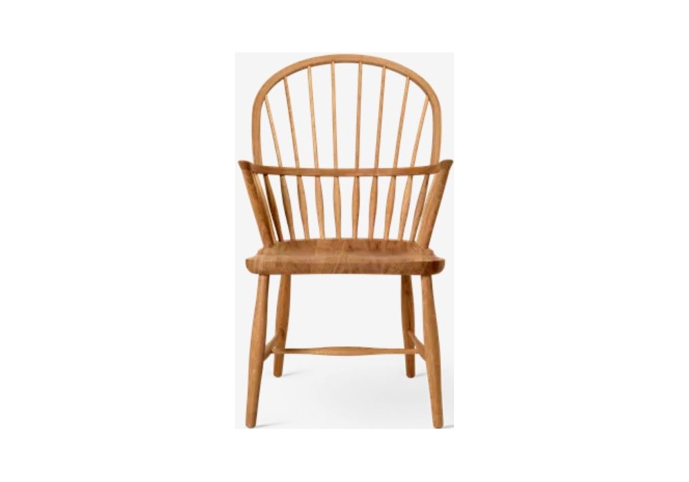 FH38 Windsor Chair conçue par Frits Henningsen pour Carl Hansen & Søn est une chaise avec accoudoirs, avec structure en chêne massif traité au savon ou à l'huile.