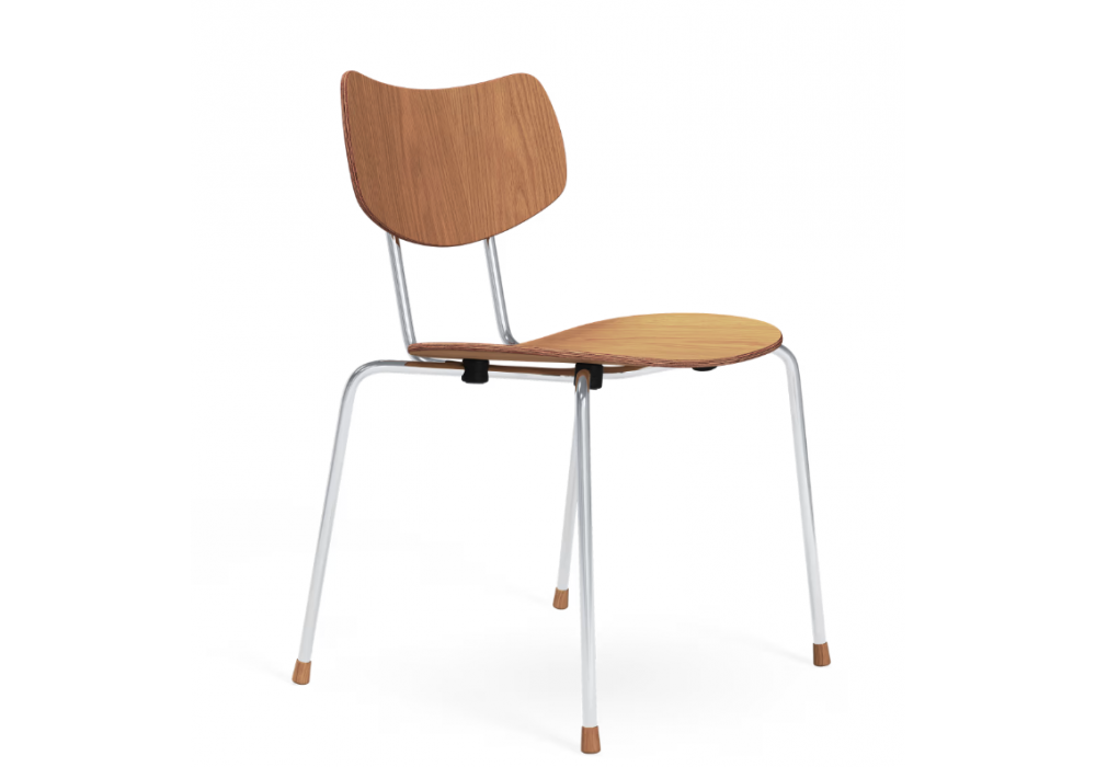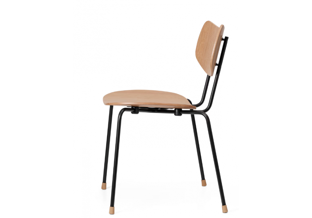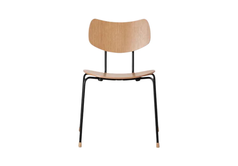 VLA26T Vega Chair conçue par Vilhelm Lauritzen pour Carl Hansen & Søn est une chaise avec une structure en acier peint par poudrage noir ou en acier chromé. Assise et dossier en placage de chêne dans différentes finitions. Pieds en bois massif finition chêne peint transparent.