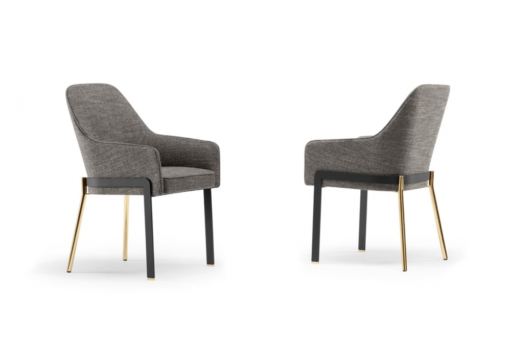 Stacy conçue par Castello Lagravinese Studio pour Opera Contemporary est une chaise réalisée avec une structure en contreplaqué courbé avec des pieds en métal. Tapisserie d'ameublement inamovible en tissu ou cuir.