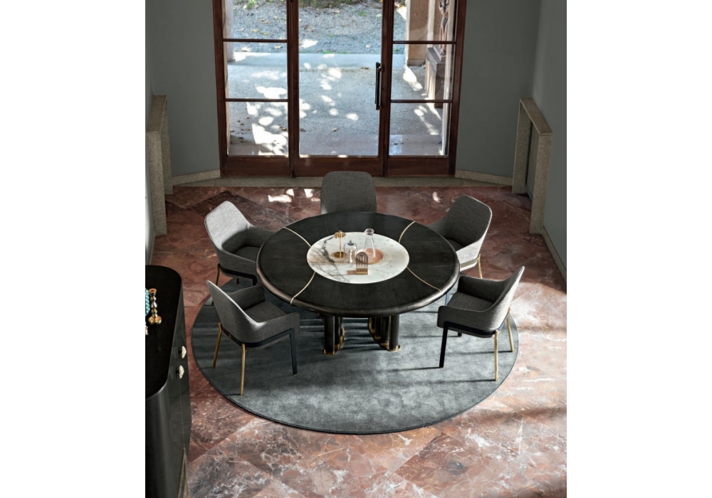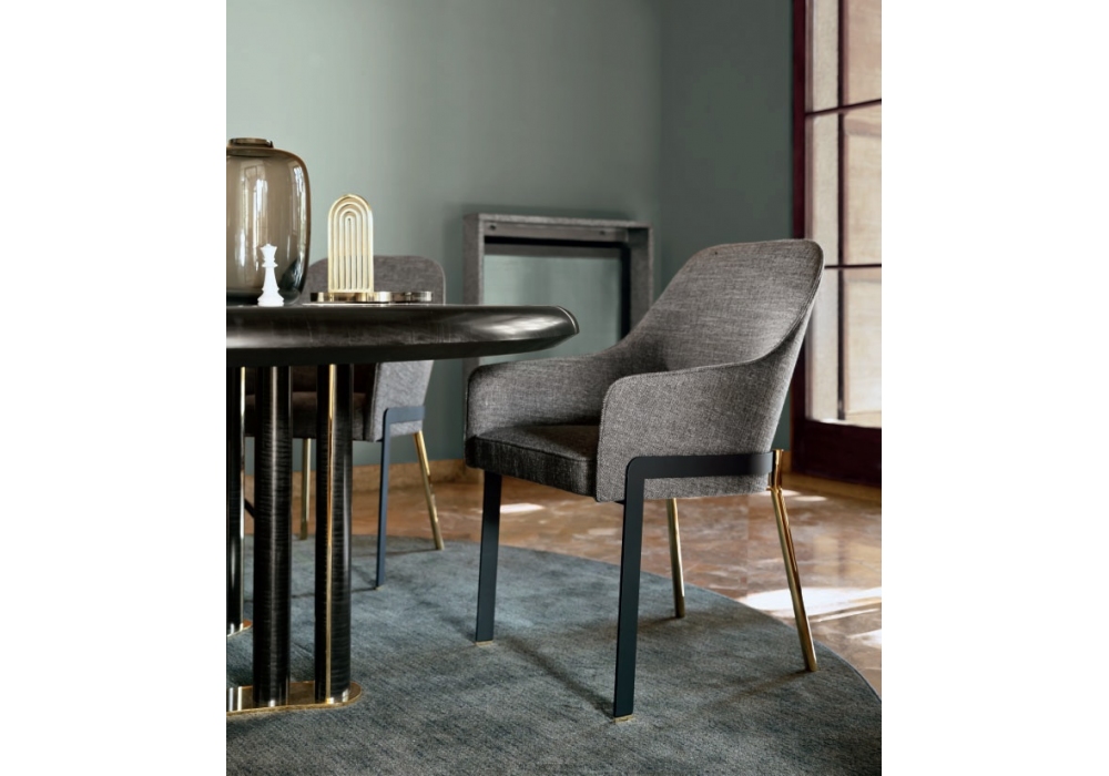 Stacy conçue par Castello Lagravinese Studio pour Opera Contemporary est une chaise réalisée avec une structure en contreplaqué courbé avec des pieds en métal. Revêtement inamovible en tissu ou cuir.