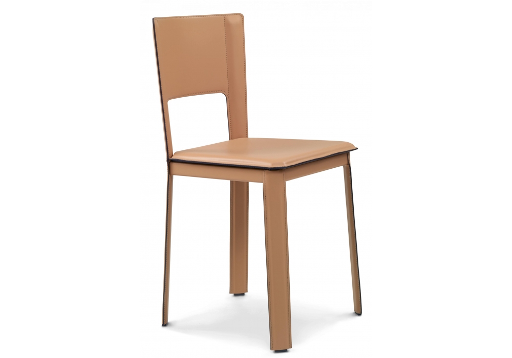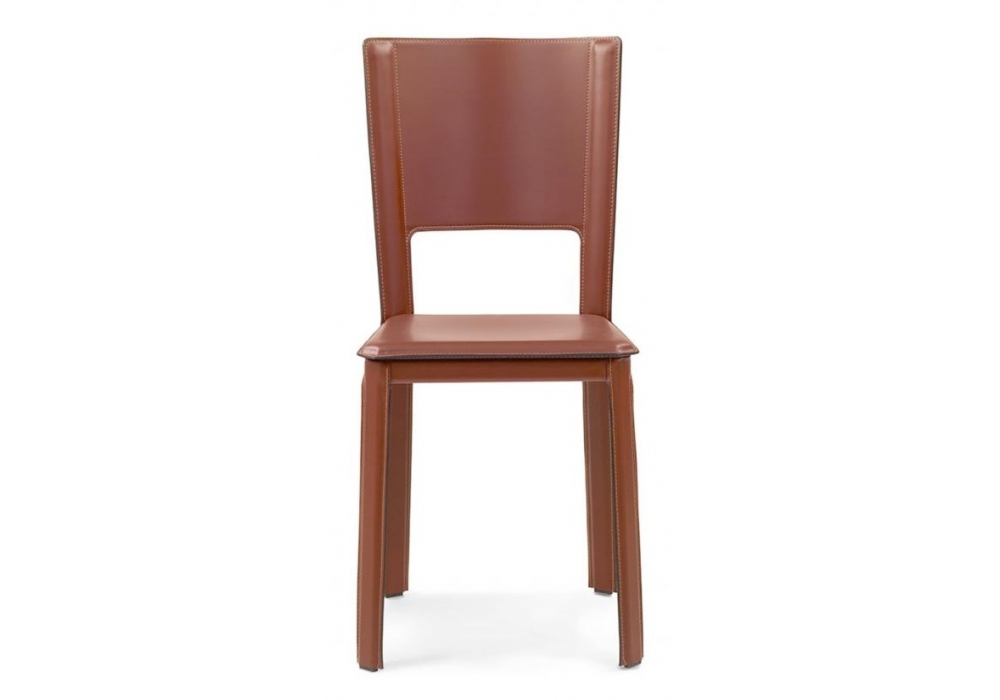 Alex 2.0 conçue par RedCreative pour Enrico Pellizzoni est une chaise avec structure en acier tubulaire, entièrement recouverte de cuir. Disponible en différentes couleurs et dans la version avec dossier haut ou bas.