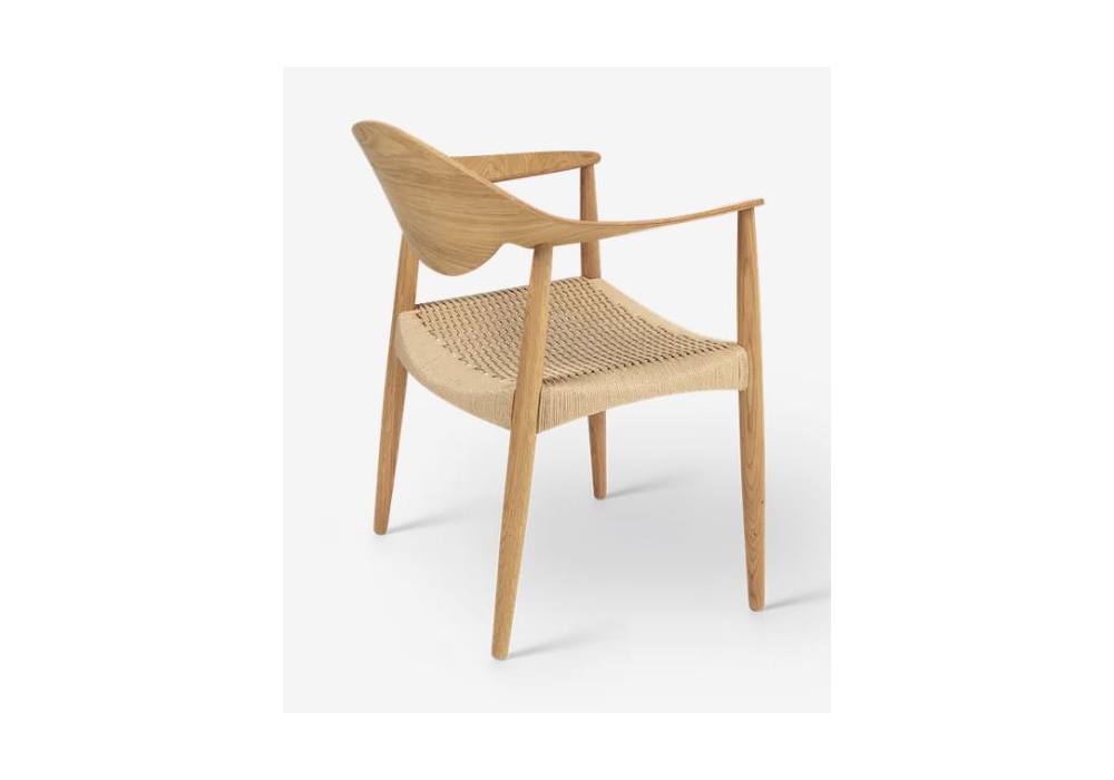 LM92C Metropolitan Chair conçue par Larsen & Bender Madsen pour Carl Hansen & Søn est une chaise en bois massif en chêne ou noyer disponible en différentes finitions. Dossier et accoudoirs en placage. Assise en corde de papier naturel.