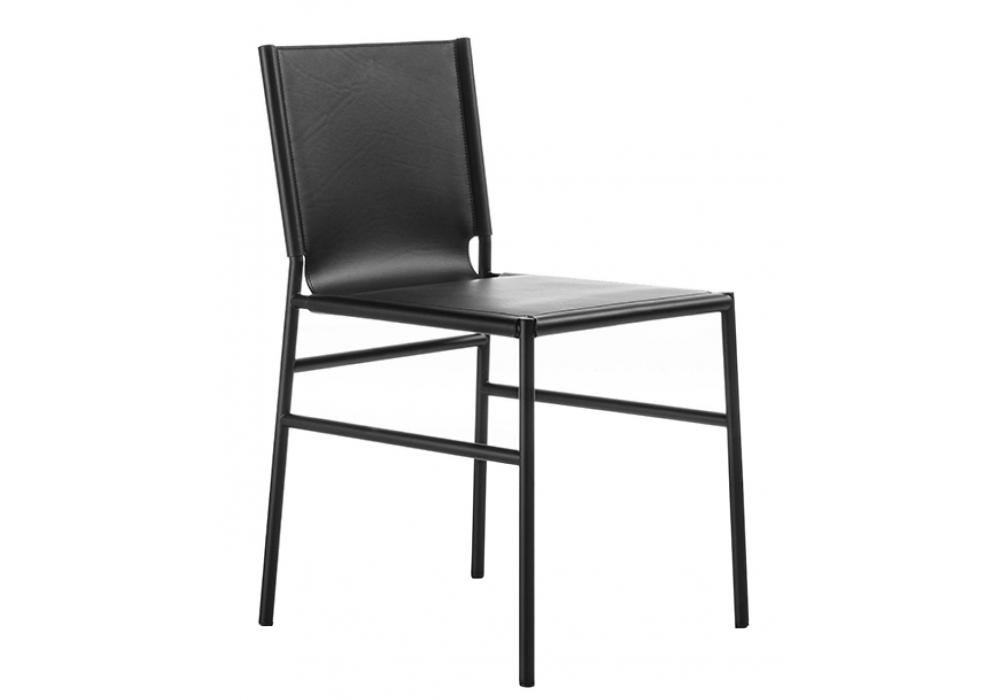 Elena conçue par Studio Nove.3 pour Enrico Pellizzoni est une chaise avec structure en acier tubulaire et revêtement en cuir. Disponible en différentes finitions.