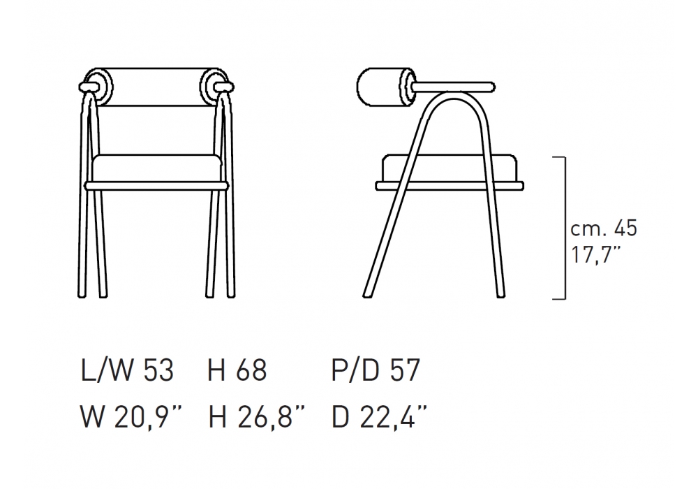 Baba conçue par Serena Confalonieri pour My Home Collection est une chaise réalisée avec une structure en acier tubulaire laqué. Le dossier et les coussins de dossier sont en caoutchouc polyuréthane et fibre de polyester. Le revêtement en tissu peut être monochrome ou polychrome. Baba est disponible en différentes finitions de revêtement ou de structure.