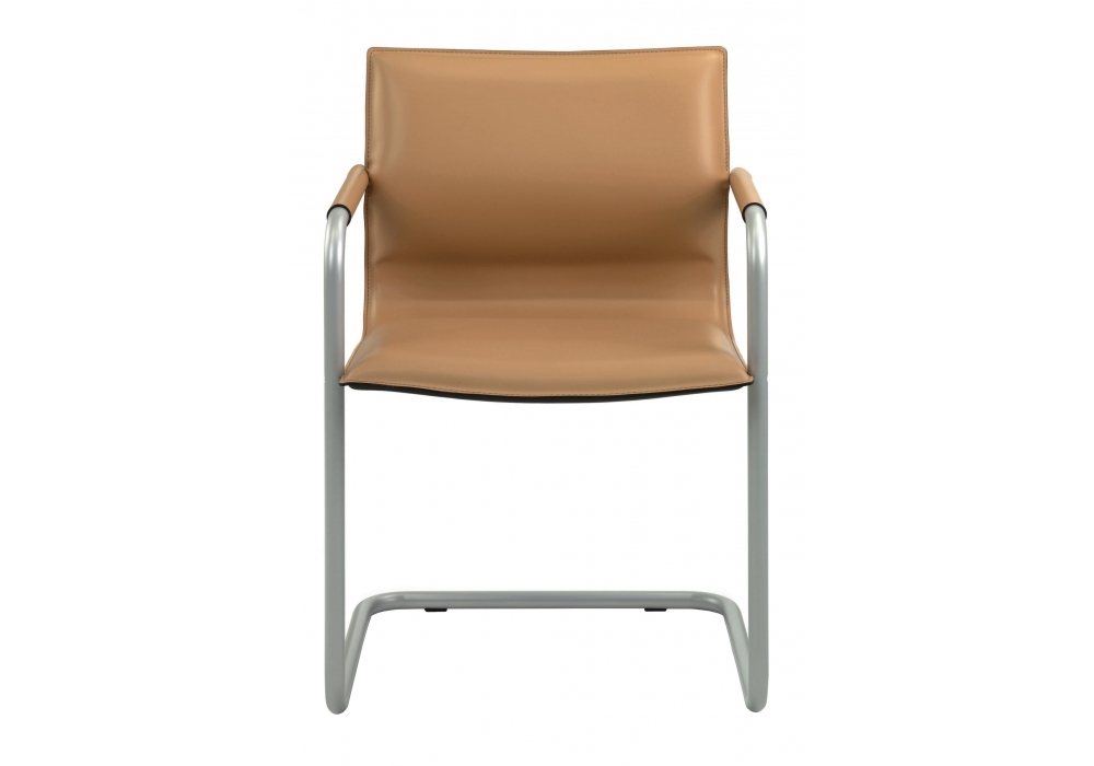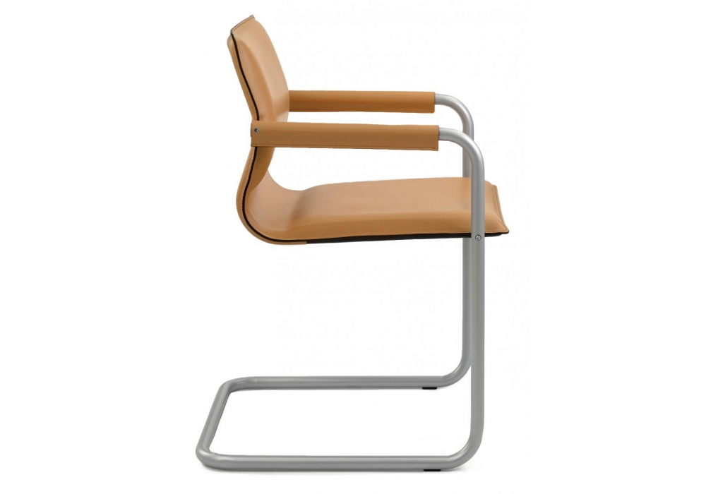 Lybra conçue par RedCreative pour Enrico Pellizzoni est une chaise avec structure en tube d'acier, assise, dossier et accoudoirs recouverts de cuir ou de peau. Disponible en différentes finitions.