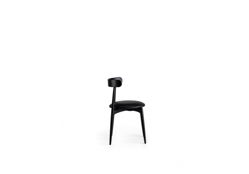 Ottavia conçue par L'Ottocento est une chaise entièrement en hêtre massif laqué noir à pores ouverts, elle se caractérise par le dossier incurvé et l'assise confortable en cuir martelé noir. Les finitions, les couleurs et le cuir ou le tissu sont personnalisables.