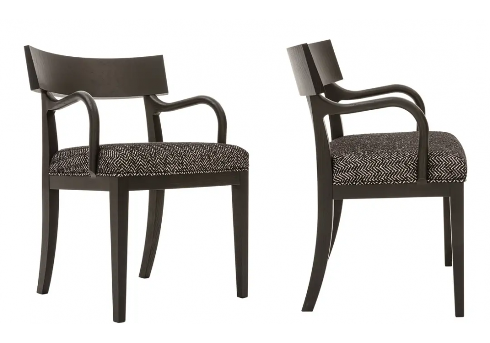 Despina conçue par Antonio Citterio pour Maxalto est une chaise avec accoudoirs réalisée avec structure en chêne et assise rembourrée avec revêtement en tissu ou cuir.