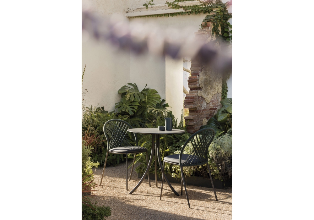 Petale conçue par MUT Design pour Expormim est une chaise d'extérieur avec structure en tube d'acier inoxydable et dossier tissé à la main en corde à haute résistance. Disponible en différentes finitions et dans la version avec ou sans accoudoirs.