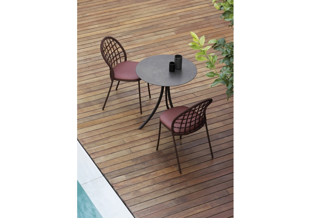 Petale conçue par MUT Design pour Expormim est une chaise d'extérieur avec structure en tube d'acier inoxydable et dossier tissé à la main en corde à haute résistance. Disponible en différentes finitions et dans la version avec ou sans accoudoirs.