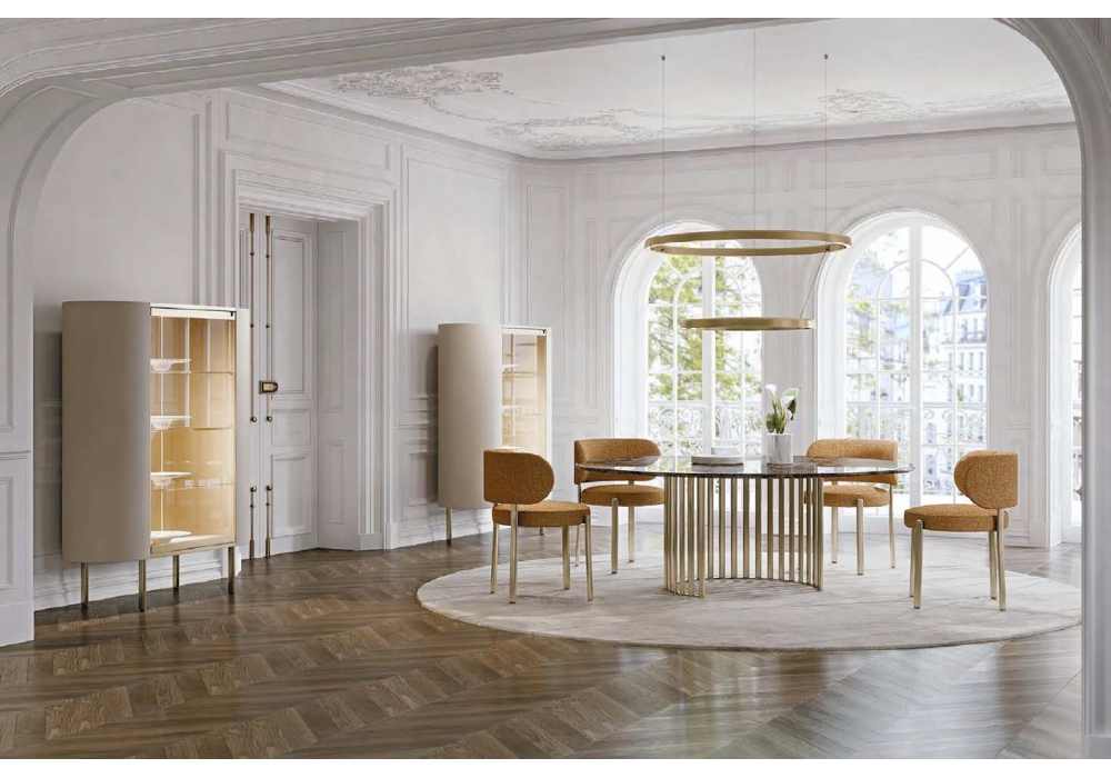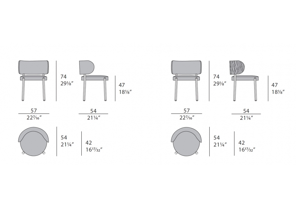 Roma conçue par Monica Armani pour Turri est une chaise avec structure en métal et contreplaqué courbé. Revêtement inamovible en tissu ou cuir et pieds en métal en deux finitions. Disponible dans la version avec ou sans dos brodé.