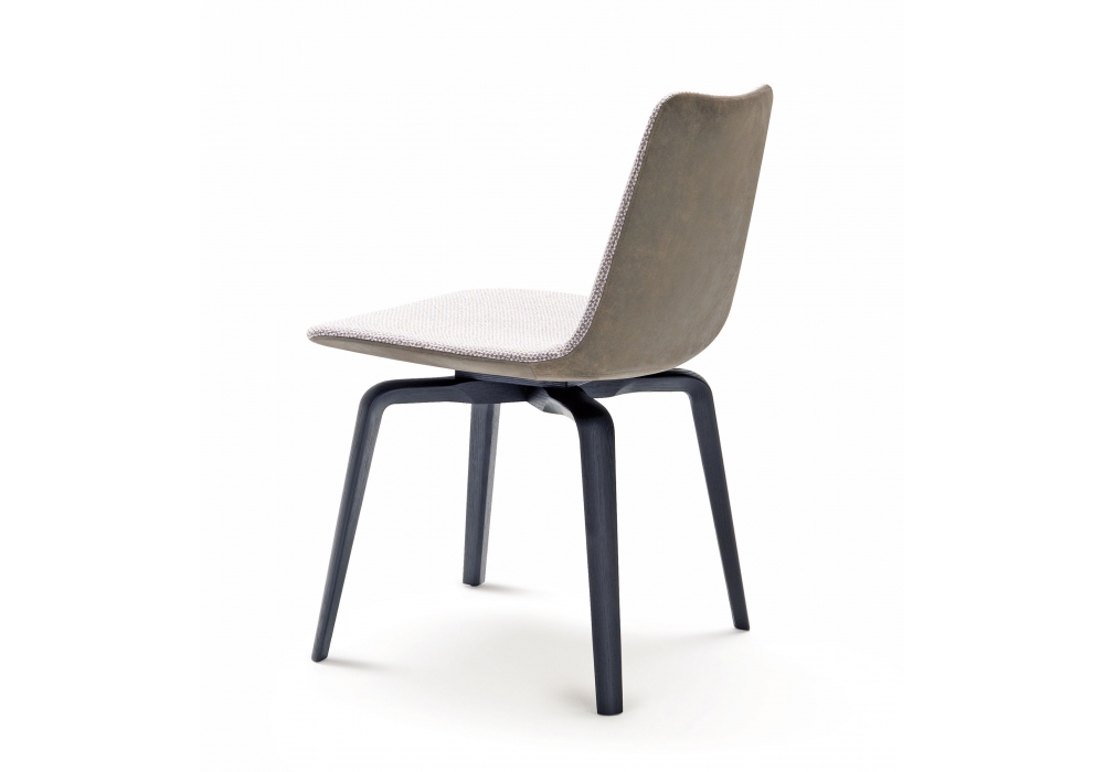 Michelle conçue par Francesco Lucchese pour MisuraEmme est une chaise réalisée avec une base pivotante en métal peint en bronze à canon ou une base fixe artisanale en chêne massif teinté. Coque en polyuréthane expansé à froid avec revêtement en tissu ou cuir équipé d'entretoises cylindriques en acier inoxydable. Sur demande, il est possible de recouvrir le devant de la chaise avec un tissu différent du dos.