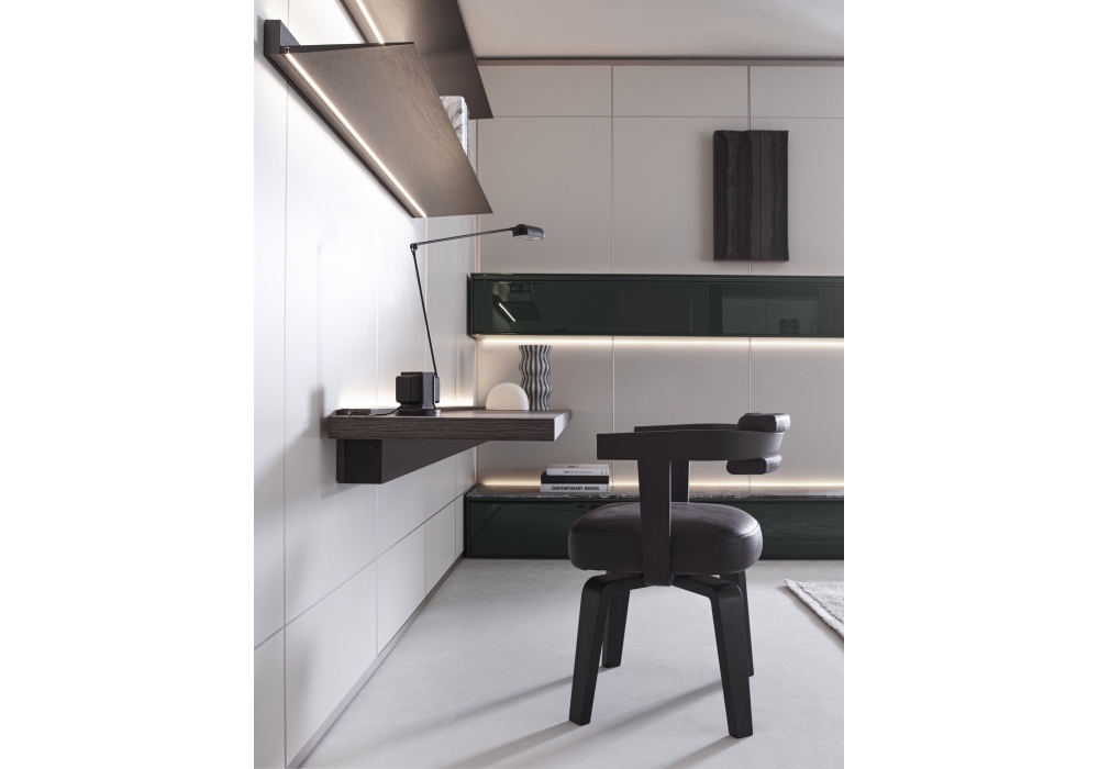 Porta Volta conçue par Herzog & de Meuron pour Molteni&C est une chaise réalisée avec structure en frêne massif teinté ou Noyer Canaletto. Revêtement en tissu, cuir ou velours mohair édition spéciale. Dossier rembourré en option. Disponible en 2 modèles.