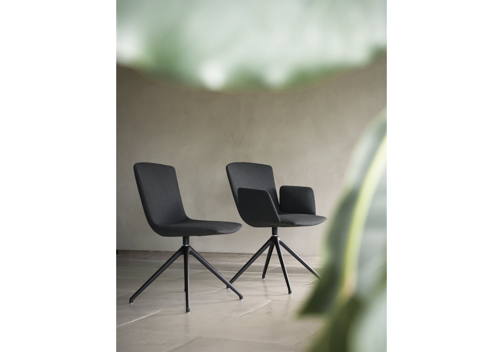 Calum Home conçue par Simon Pengelly pour Desalto est une chaise pivotante avec base en aluminium moulé sous pression, coque en polyuréthane rigide et rembourrage en mousse. Revêtement en tissu ou cuir. Disponible en différentes finitions et versions.