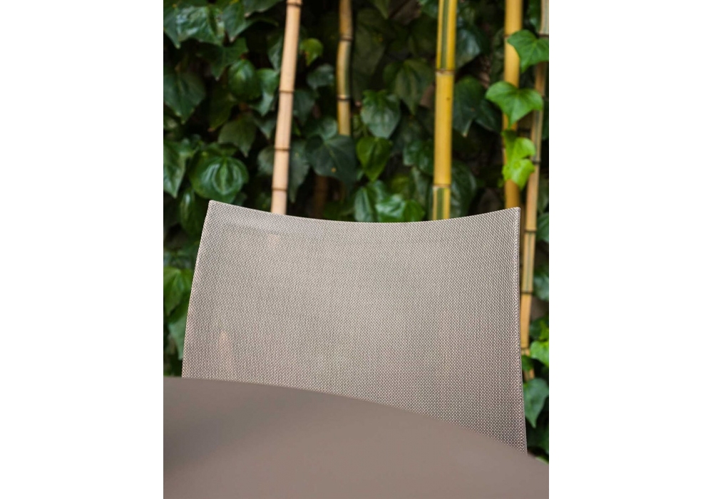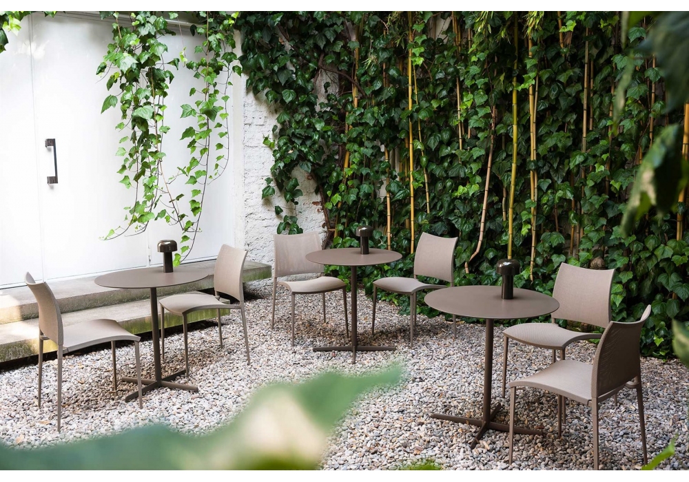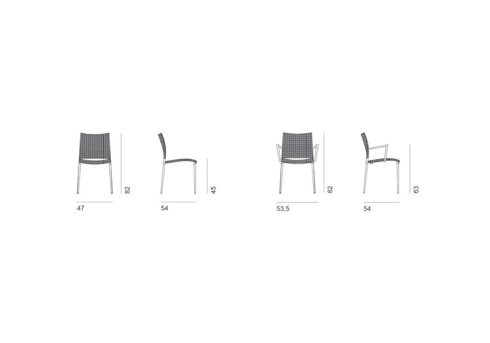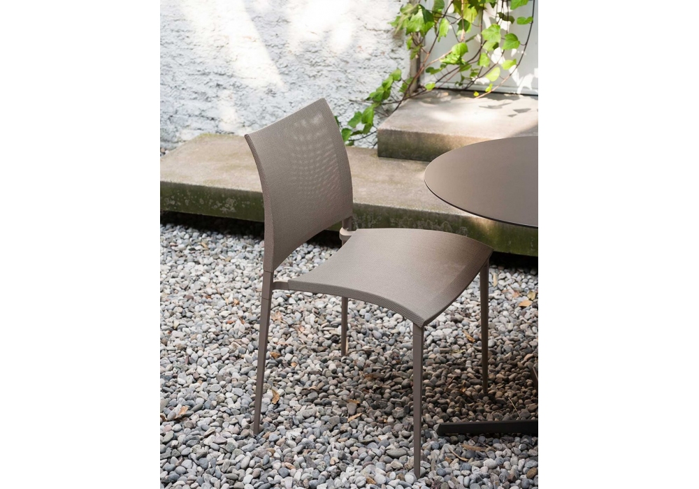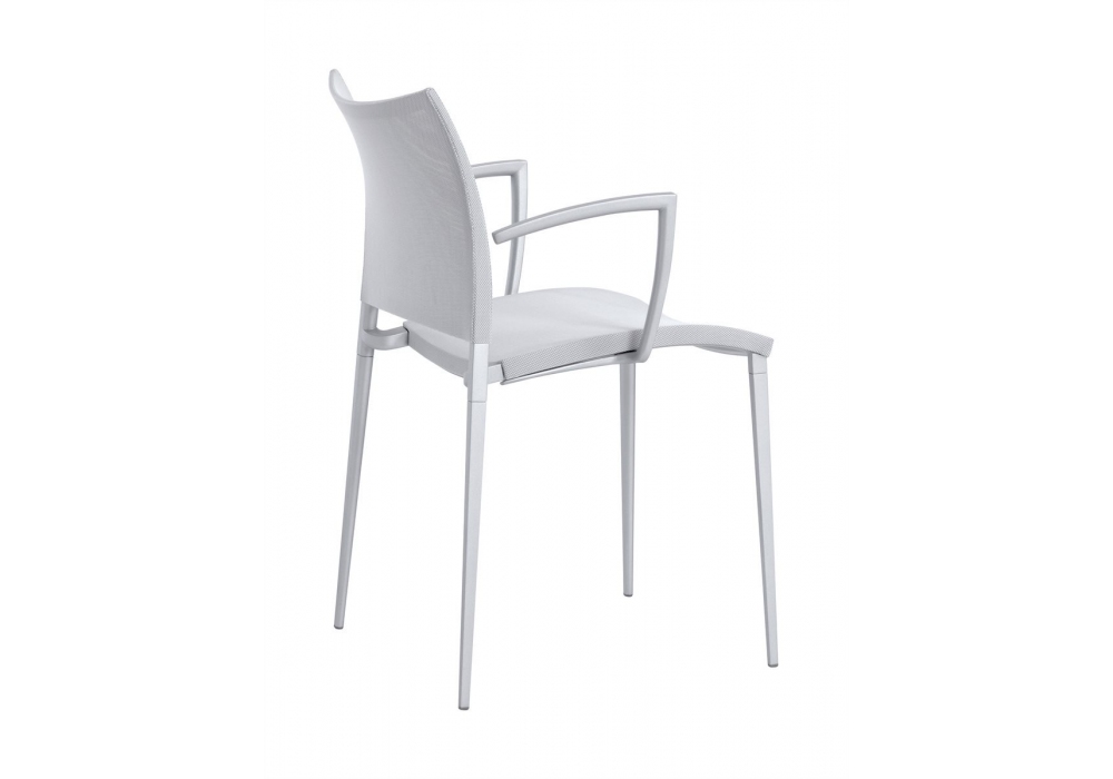 Sand Air conçue par Pocci e Dondoli pour Desalto est une chaise empilable avec structure en aluminium moulé sous pression. Assise et dossier en maille polyester recouverte de PVC (dans la version Canatex la maille est recouverte de PVC et de chanvre). Disponible en différentes finitions et dans la version avec ou sans accoudoirs.