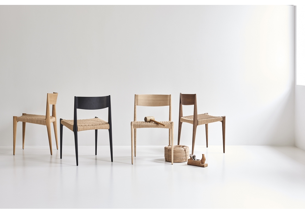 Pia conçue par Poul Cadovius pour Dk3 est une chaise en bois massif et assise avec corde tressée à la main. Disponible en différentes finitions.