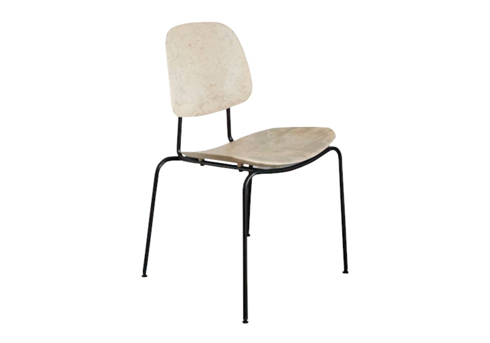 Compound Dining conçue par OEO Studio pour Mater est une chaise empilable avec pieds en acier finition noire, assise et dossier en Matek®, en différentes finitions.